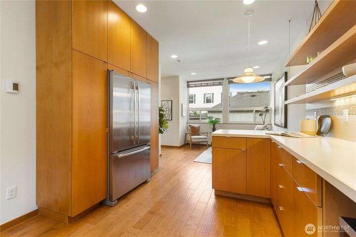 Located in central Fremont and walkable to all the things, this stylish and well-constructed 4 Star Built Green townhome offers a slew of features not often seen at this price point. The ground floor has a roomy garage with a glass door and radiant heated floor -- making it a comfy space for people or a car. Great natural light washes over the main level, which includes a powder room and a massive kitchen with polished concrete counters, cabinets galore, and a gas range. Upstairs is a sizable bedroom with walk-in closet, space for office, and bath with dual vanities and skylight. The rooftop deck rounds it all out with a view of the surrounding hills. Freshly painted throughout. Pre-inspected. Ask about a seller credit towards rate buydown!