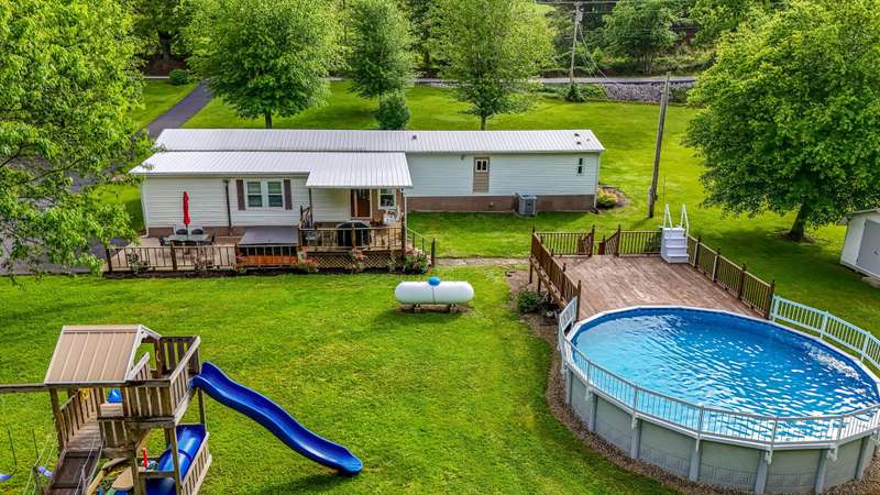 House is back on the market due to buyer's financing falling through. Country living at its best doesn't begin to describe this great property. This 1996 16 X 80 Fleetwood mobile home has a large family room added on the back plus a large bedroom and utility room added on the front. It is meticulously maintained, and you must see to appreciate. There is a 30 X 24 detached 2 car garage that is wired with 220. Enjoy the large above ground pool with decking in the back yard, or enjoy the Hot Tub, and if that's not enough, enjoy the 14 acres of wooded land across the creek that runs through the back yard. There is also a 2 car carport in the back for your vehicles, boats, or other needs. The blacktop drive helps keep your property looking great and free of that unwanted dust and dirt. The swing set does not convey with the property. Back on the market due to buyer financing. Nothing wrong with the house.