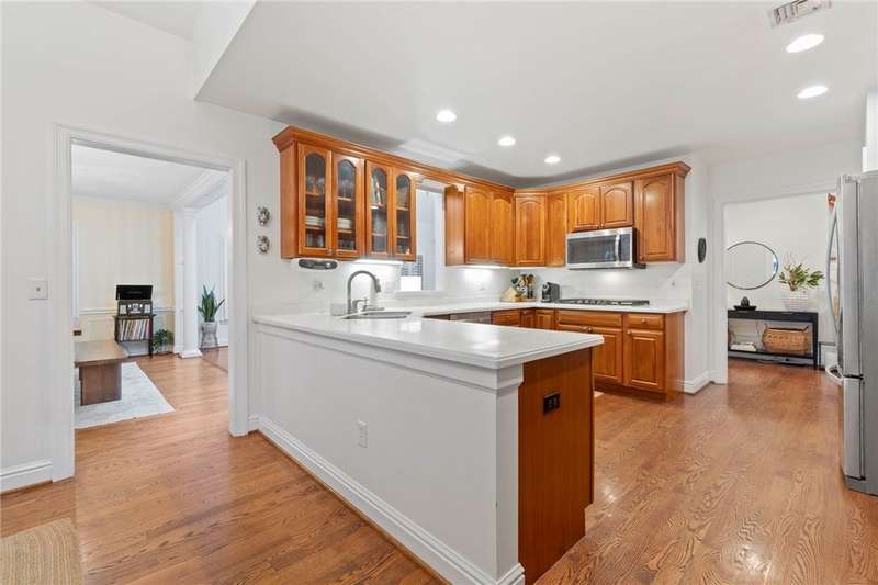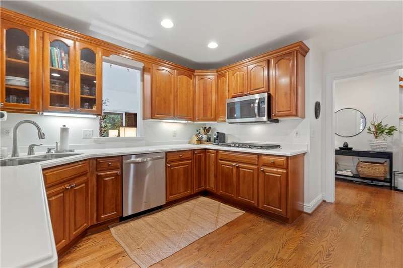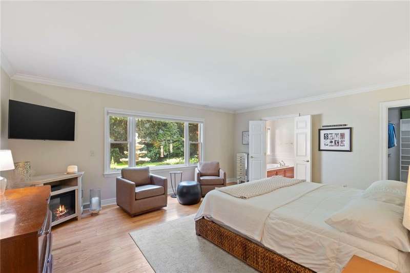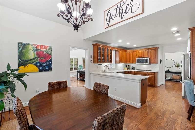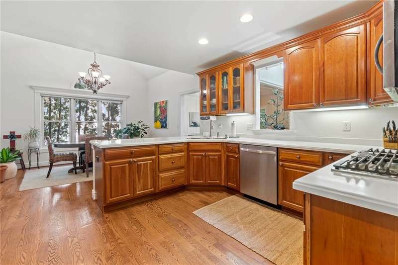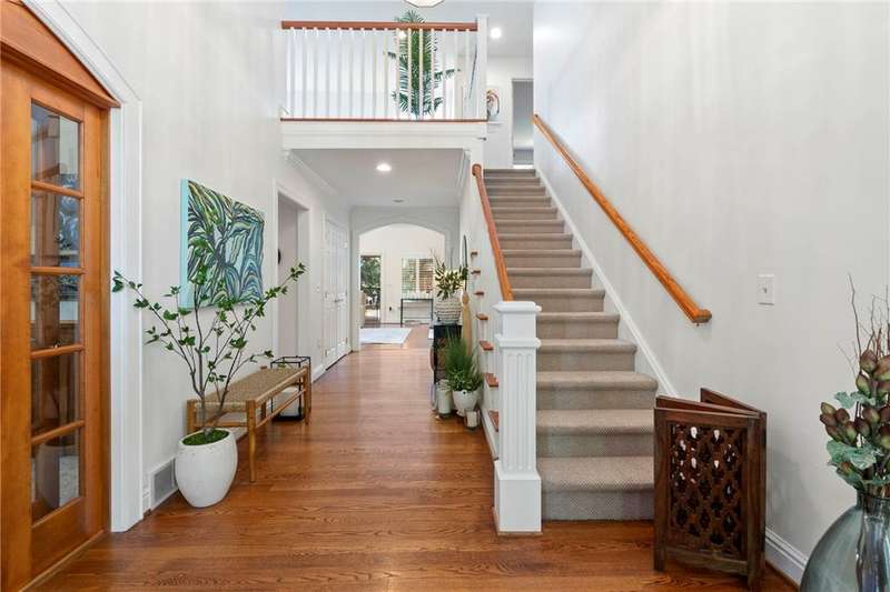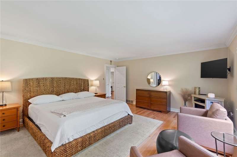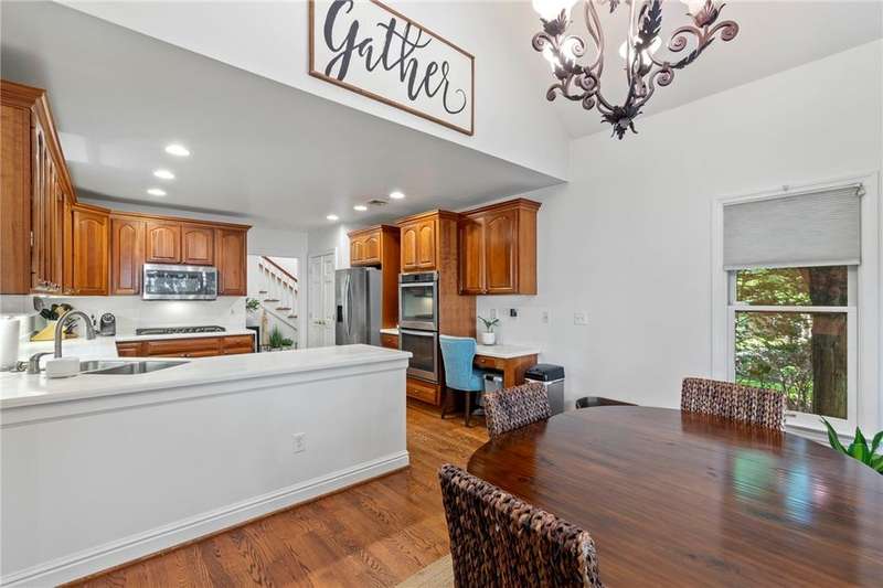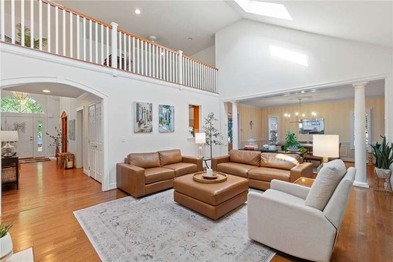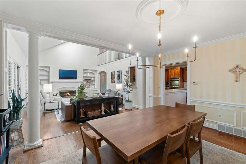 In the highly sought-after Summit of Oakmont, 4 bedroom brick French Provincial home offers timeless elegance. Stamped concrete driveway leads to the entry & rich hardwood floors flow to a stunning open great room with soaring ceilings & an airy loft-style family room above. Den is a standout, ideal for remote work, w/ classic wood paneling, French doors, large windows & custom built-ins. Equipped with stainless steel appliances, the kitchen is well designed, peninsula counter & bright morning room for casual meals. Dining room & living room create perfect flow for entertaining. Coveted 1st floor primary, with jetted tub, shower, dual vanities, & walk-in closet. 1st flr. laundry=convenience. From the great room to a covered patio oasis, you'll enjoy outdoor living with a stone gas fireplace, TV & outdoor kitchen surrounded by professionally landscaped & fenced back yard. Upstairs an open family room, 3 bedrooms & full bath. Lower level is finished with a full bath & plenty of storage.