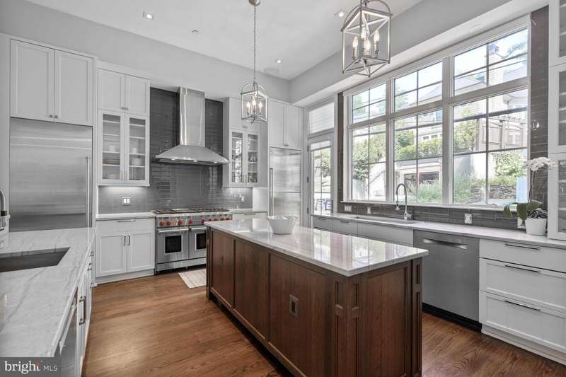 Situated in the heart of Kent adjacent to Key Elementary, this light filled home blends sophisticated formal spaces with a modern open floor plan creating a private oasis in the middle of Washington D.C.! Featuring 7,100SF across four finished levels, this residence truly has it all including 8 bedrooms, 7.5 baths, spacious entertaining areas, private offices, media room, exercise room, indoor spa area, game room, wine cellar, elevator to all levels, outdoor terraces, garage and more. Originally built in 2016, the home features top-of-the-line finishes, custom millwork, and premium appliances throughout. Expansive floor-to-ceiling windows in the vaulted family room and gourmet kitchen are a showstopper and flood the main level with natural light, which also opens to a serene side patio. This level also includes formal living and dining rooms with gas fireplace, office/optional bedroom with full bath, powder room, and mud room with direct access to the two-car garage. The open stairway leads to a second level with a luxurious primary suite that includes two walk-in closets and en-suite bath with double vanities, soaking tub, and shower. Three additional bedrooms, two baths, laundry #1, and a charming front porch complete this floor. All the fun is found on the third level with a large game room, wet bar, access to a top floor deck with fireplace, two additional bedrooms, full bath, and storage. The fully finished lower level, which also serves as the perfect guest suite, offers a private media/rec room, spa with jacuzzi and steam shower, wine cellar, exercise room with full bath, bedroom/optional office, and laundry room #2. Located just minutes from Georgetown, Virginia, and Maryland, with easy access to all area airports, this neighborhood is coveted for its close proximity to the conveniences of the city coupled with the privacy and quiet of residential living. Residents enjoy several nearby shops and restaurants (Et Voila, Bambu, Sweet Agave, Bistro Aracosia, Starbucks & more), as well as neighborhood amenities such as the Palisades Rec Center and Playground, Sunday Palisades farmer's market, the Capital Crescent Trail, and Battery Kemble Park.