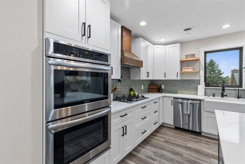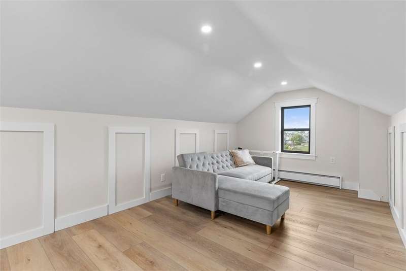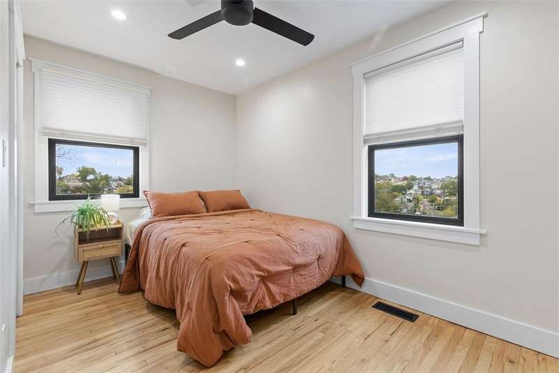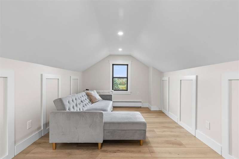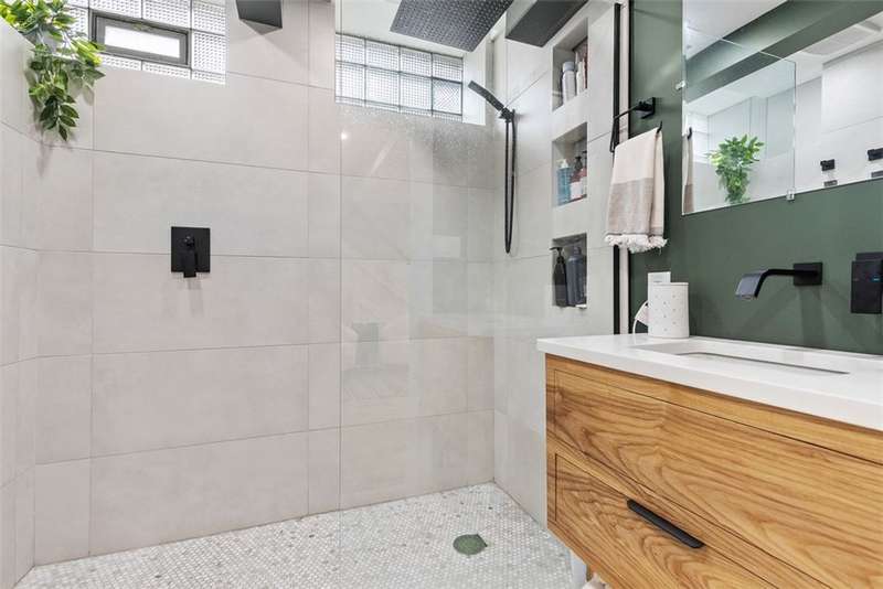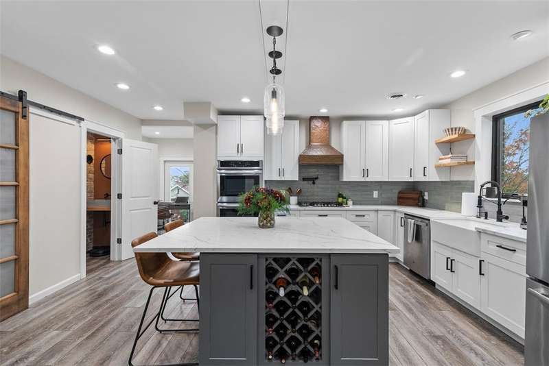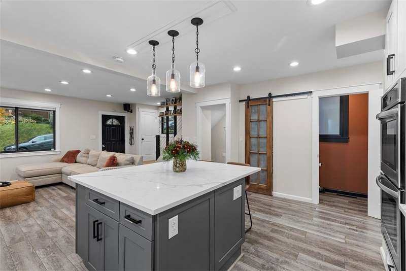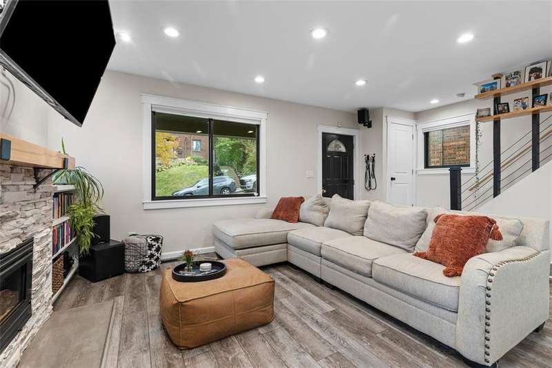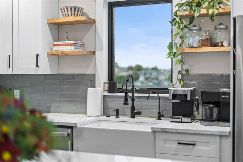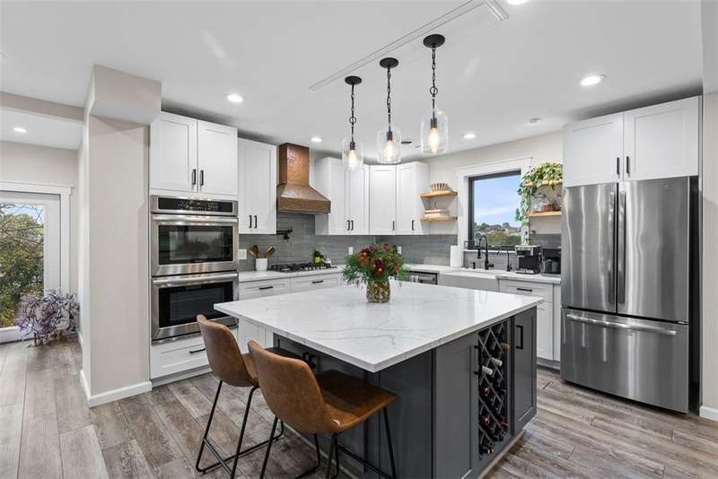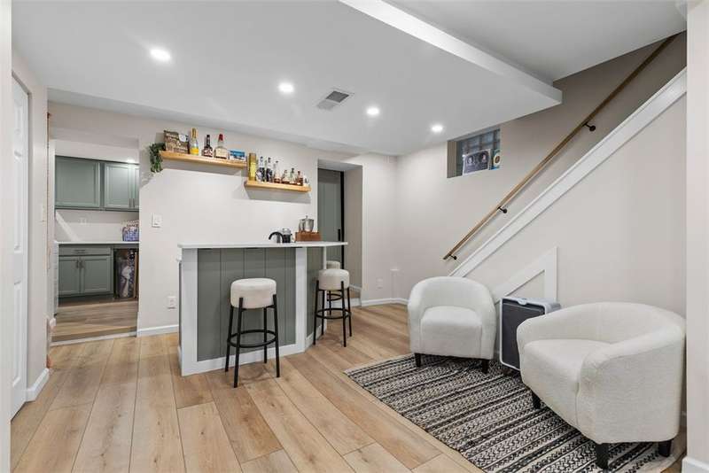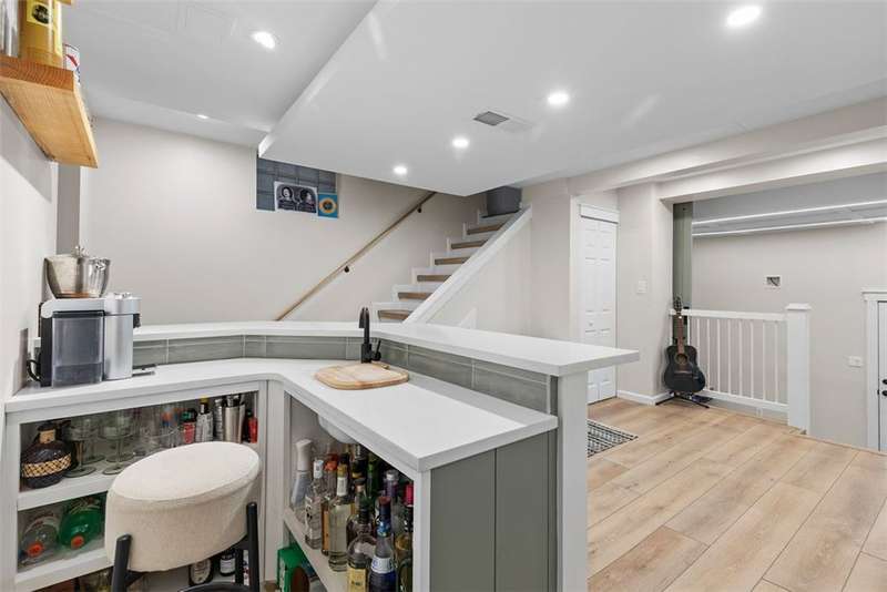 This completely updated home features beautiful finishes throughout. The stunning kitchen offers a large island for gathering with friends and family, and the kitchen sink features under-sink filtration. Quartz countertops and newer stainless steel appliances complete the look. Of the two bedrooms on the second floor, the primary has a 9x6 walk-in closet. There is a full bathroom with a glass enclosed shower, dual shower-heads, and a stand-alone dreamy bathtub on the second floor as well. The expansive third floor bedroom provides a private retreat. The lower level is perfect for entertaining with a built-in bar and more room to play. In the laundry room, there is a built-in doggie-wash for your furry loved ones and plenty of space to organize your clothes. There is also an impressive full bathroom downstairs and an additional flexible room that can serve as a fourth bedroom, home office, den or craft space. This home truly has so much to offer!