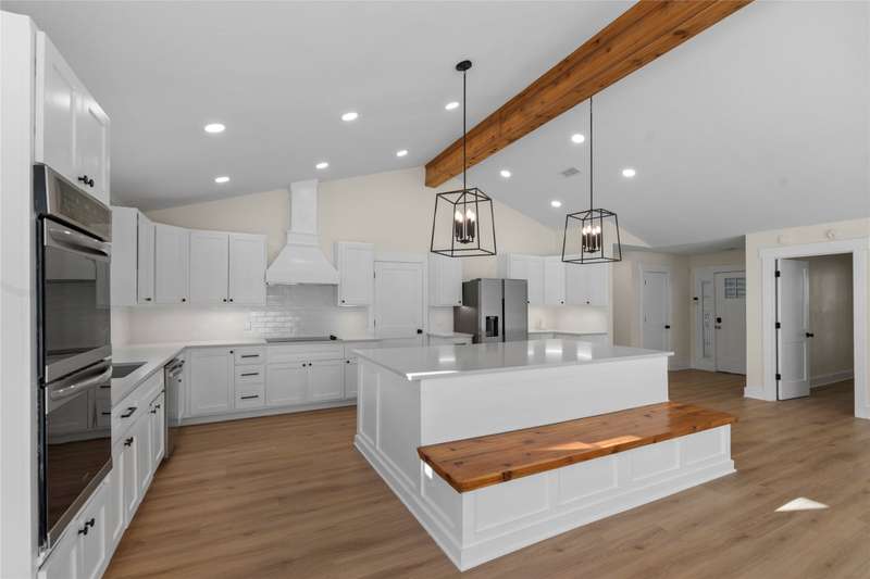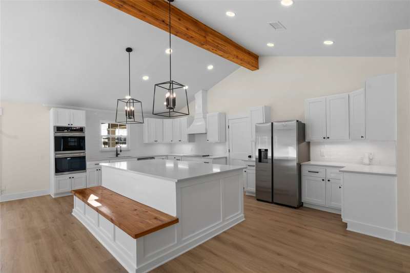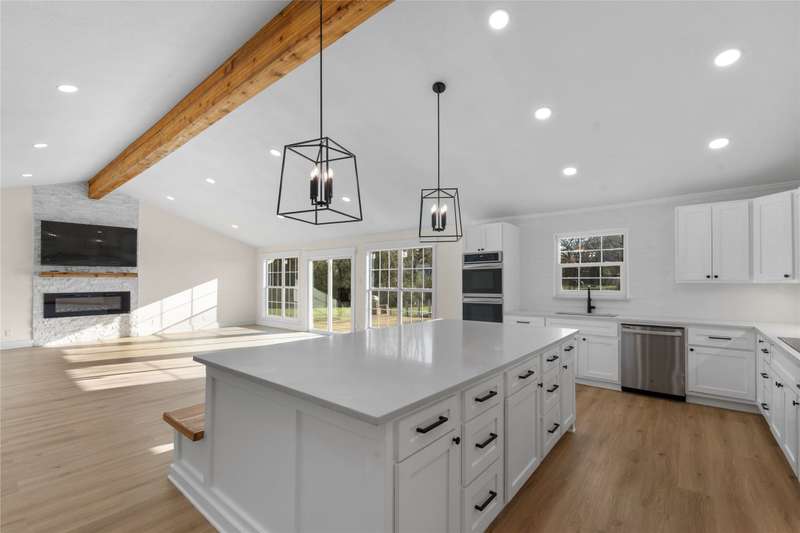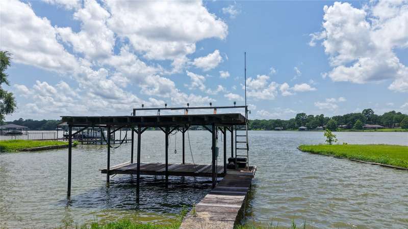 Fantastic value! Home completely remodeled and expanded to a 4 bedroom, 3 bath with approximately 2756 sq ft on huge lot with open water view! Huge open concept living room with vaulted beam ceiling and linear gas fireplace. Beautiful kitchen with quartz counter tops, shaker cabinets, 2 built in convection ovens, and huge island. Water side primary bedroom and spacious bath with soaking tub and beautiful glass surround shower. Three more spacious bedrooms and 2 more baths make this home great for full time or second home living, entertaining and sleeping a large group of family or friends. Including the land below the 325 line this lot is huge! Covered back porch and large deck. Partially fenced yard with wood playscape. One slip boathouse but with the amount of waterfront at the shoreline with a TRWD permit could possibly build larger boathouse if desired. Would make a great Short Term Rental too! Water and Sewer provided by East Cedar Creek Fresh Water Supply District. Refrigerator, washer, dryer, TVs available separately.
