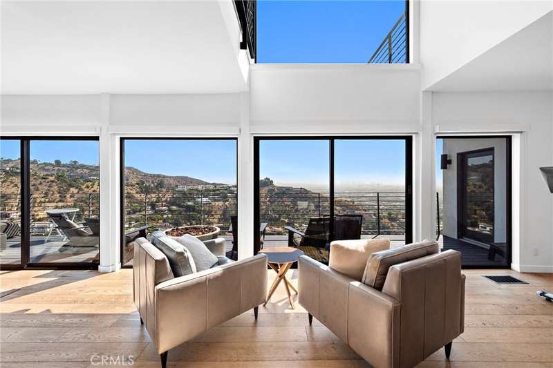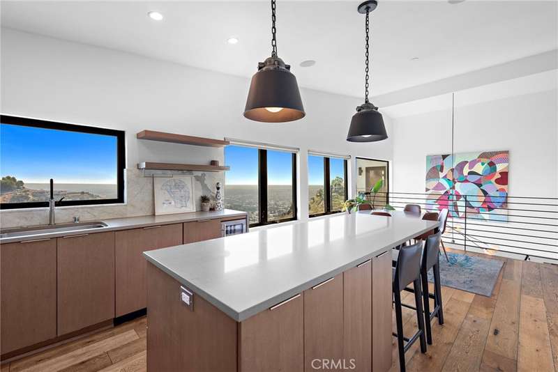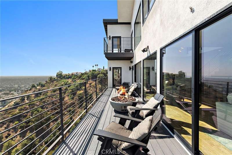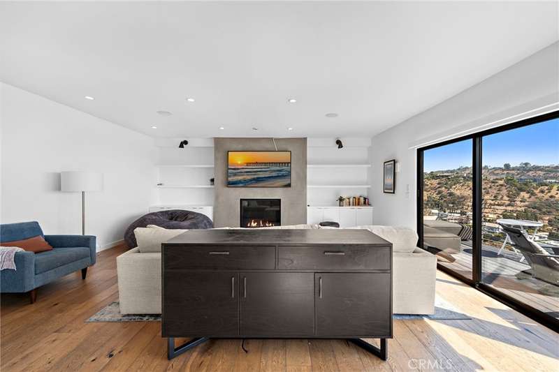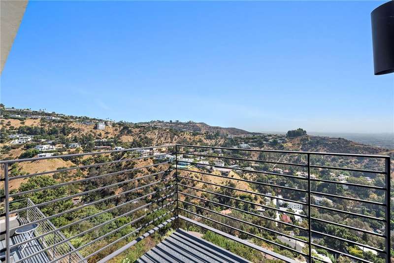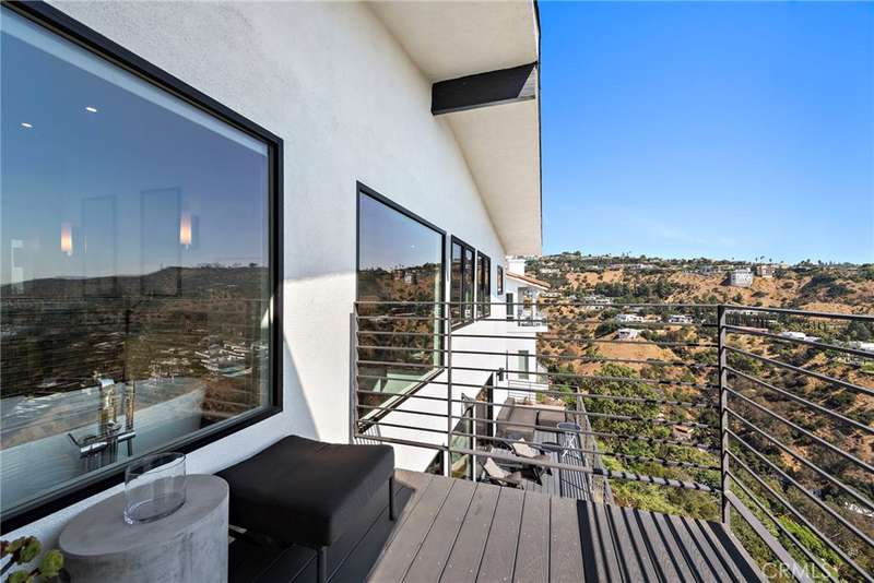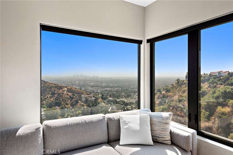 Nestled in the Hollywood Hills, sits this beautifully designed home with breathtaking views of the city below. Despite its secluded and private setting, this is just moments away from the vibrant energy the city has to offer. Having the perfect balance between tranquility and urban convenience, the home allows you to retreat into your own world while still being minutes from the heart of LA's most iconic destinations. The open-concept design invites seamless entertaining with its wet bar, fireplace, and soaring ceilings. The interiors feature oak floors and Caesarstone countertops adding warmth and texture, while panoramic views provide a stunning backdrop. With Viking appliances, a spacious island with seating, and a charming dining nook, this kitchen is perfect for the gourmet chef or casual cook. The primary suite features a corner window framing spectacular views, a walk-in closet, private balcony, and a bathroom with both a soaking tub and a walk-in shower. The front deck, complete with a fire pit, offers the perfect perch to enjoy the glittering LA skyline.