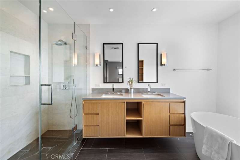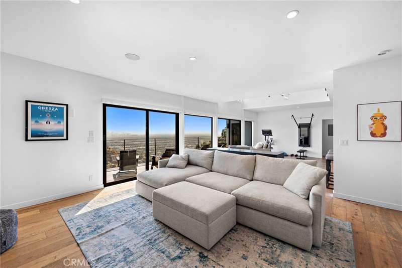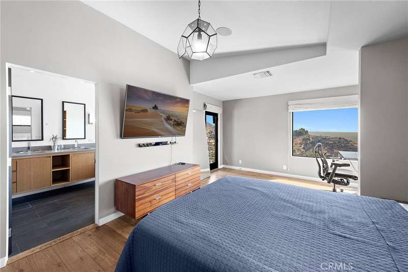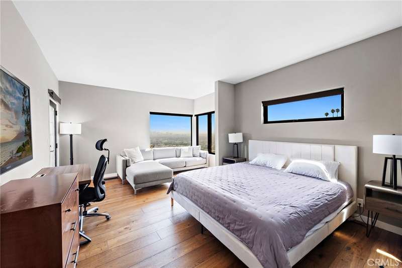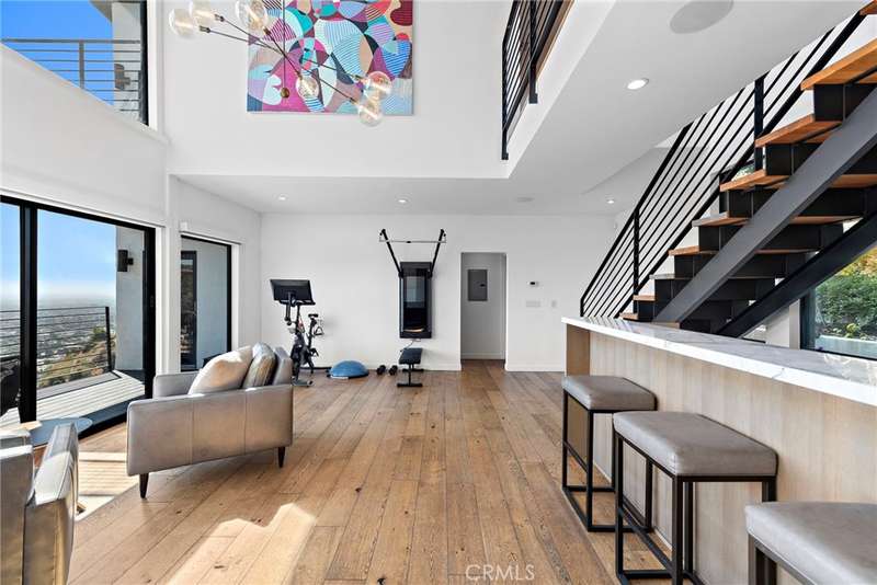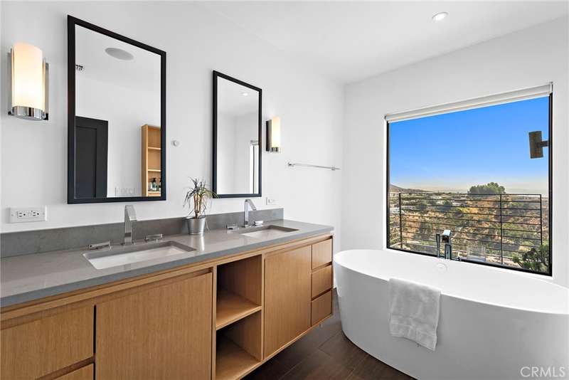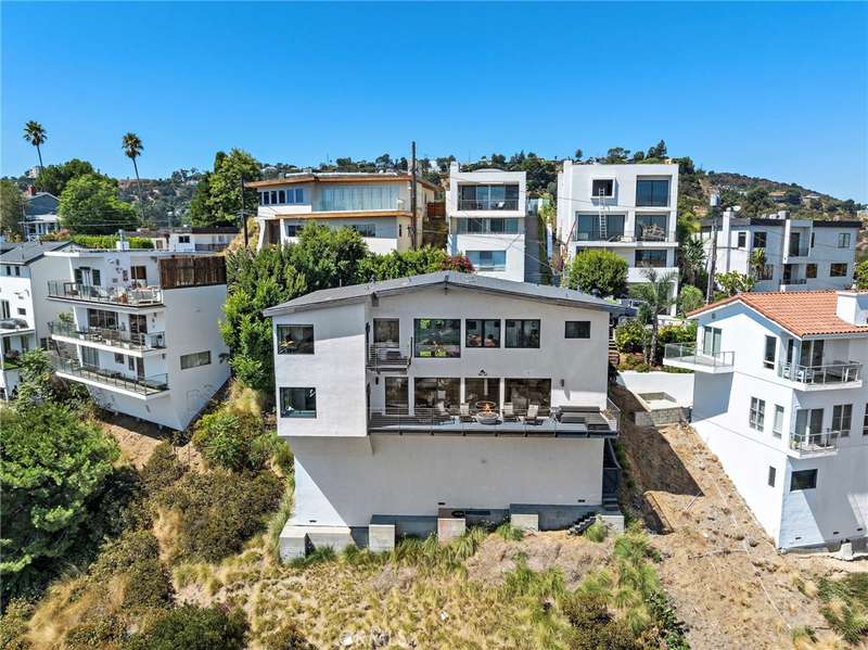 Nestled in the Hollywood Hills, sits this beautifully designed home with breathtaking views of the city below. Despite its secluded and private setting, this is just moments away from the vibrant energy the city has to offer. Having the perfect balance between tranquility and urban convenience, the home allows you to retreat into your own world while still being minutes from the heart of LA's most iconic destinations. The open-concept design invites seamless entertaining with its wet bar, fireplace, and soaring ceilings. The interiors feature oak floors and Caesarstone countertops adding warmth and texture, while panoramic views provide a stunning backdrop. With Viking appliances, a spacious island with seating, and a charming dining nook, this kitchen is perfect for the gourmet chef or casual cook. The primary suite features a corner window framing spectacular views, a walk-in closet, private balcony, and a bathroom with both a soaking tub and a walk-in shower. The front deck, complete with a fire pit, offers the perfect perch to enjoy the glittering LA skyline.