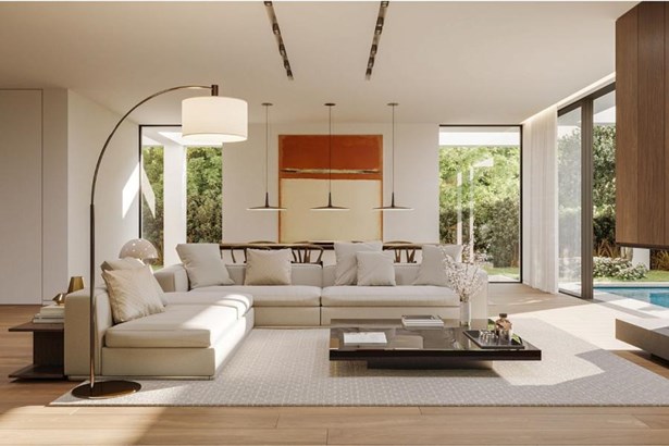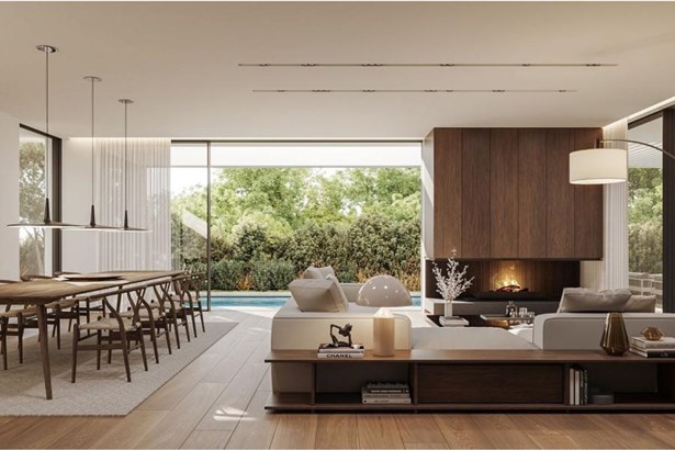 The open-plan living and dining area is perfect for entertaining guests or relaxing with family. The space is flooded with natural light and offers ample room for comfortable seating and dining arrangements.
