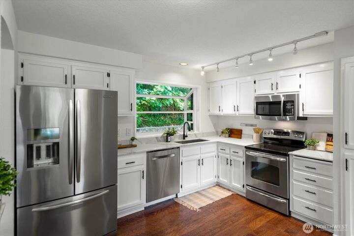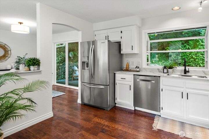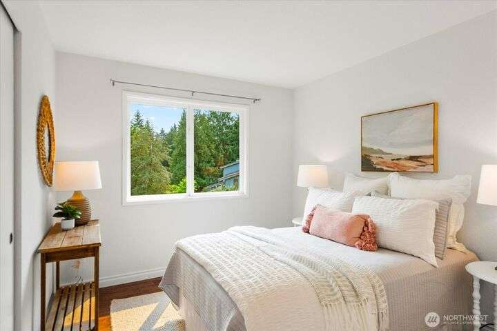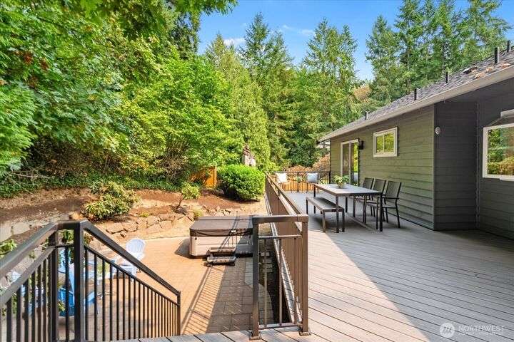 From the moment you turn down the quiet, tree-lined street, you know you have found the idyllic location you have been dreaming of. Set at the end of a cul-de-sac in the heart of LFP, this custom-built home offers room to live, work and relax. Light and bright main level boasts updated kitchen, open concept living & dining rooms, primary with en-suite bath, 2 beds + full bath. Lower level with family room, 4th bed/home office, 3/4 bath & laundry. Enjoy being surrounded by nature in your private back yard oasis. HUGE entertainment deck & patio with hot tub. Looking to plant roots & build community? This is THE ONE! Excellent schools + deeded rights to the Civic Club + transferable Aqua Club membership. Pivotal access to I-5, 522 & 405.