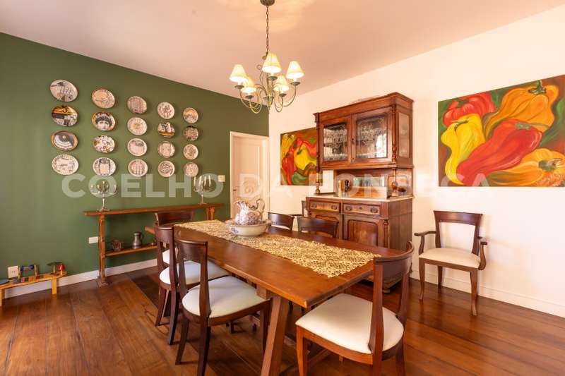 Sala de jantar, sala intima e escritório. Ampla cozinha repleta de armários embutidos e copa.