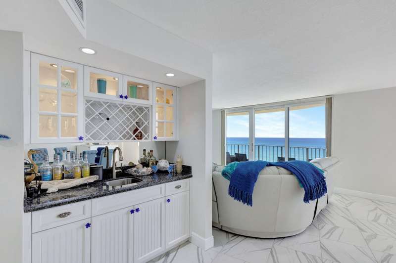 Fully updated, direct ocean condo with impact windows. Unobstructed beach views in all directions and an intracoastal view from your 14th floor wrap-around balcony. Kitchen has stainless steel appliances, granite countertops, decorative tile backsplash, undermount lighting, and white cabinetry. Floors are tile in the living areas and new coastal wood look luxury vinyl plank in the bedrooms. Built-in wet bar with wine rack. A/C is 2022. Covered parking spot. Storage cage. HOA includes exterior insurance, water, cable/internet package, gym, grill, and pool. If you are ready to live the beach lifestyle with quick access to some of the best restaurants and shops. Washer and dryer can be installed with ARC approval. Cats allowed, no dogs, but ESA dogs will be approved.