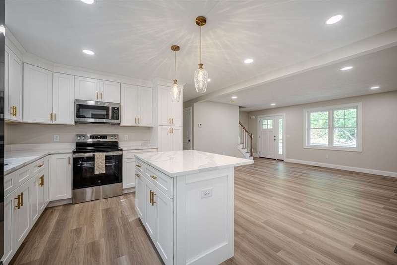 Stunning new construction townhouse in Millbury, just minutes to the MA Pike & The Shops at Blackstone Valley! Offering 1,700+ sqft of thoughtfully designed living space, this 3-bedroom, 2.5-bath townhome seamlessly blends style and function. The main level boasts an open-concept Living/Dining/Kitchen, ideal for entertaining, with a designer kitchen featuring white shaker cabinets with gold hardware, quartz countertops & island, stainless steel appliances, large dedicated laundry room, and a convenient half bath. Upstairs are 3 spacious bedrooms, including an elegant primary suite with full bath and expansive walk-in closet. Additional highlights: Over-sized 1 car garage, central AC, walkout basement, farmers porch, and back deck with composite decking & vinyl railings. Loaded with exceptional curb appeal and finished with high-end touches throughout!