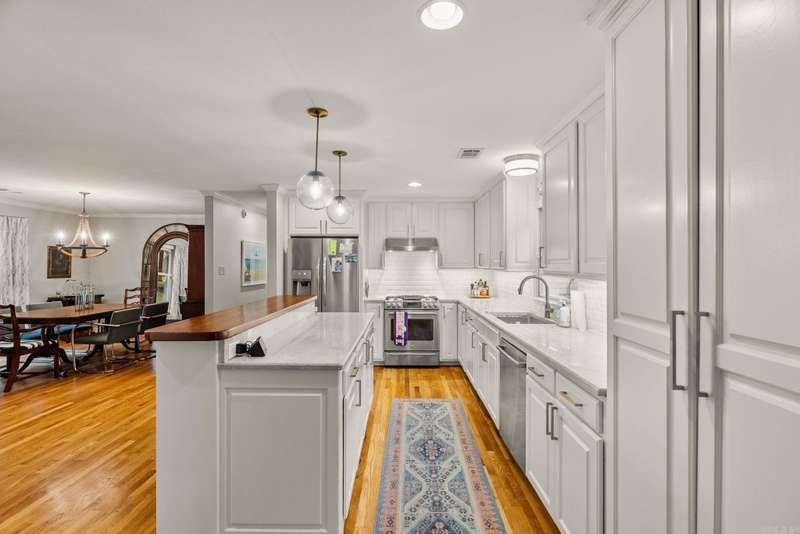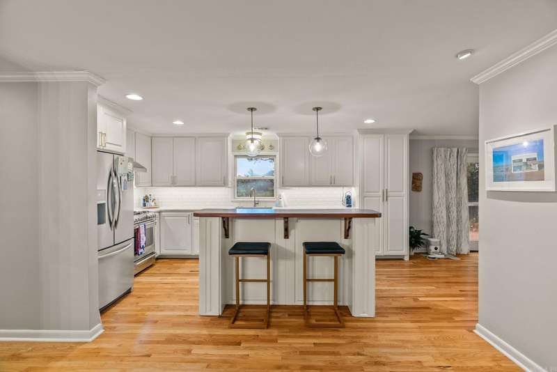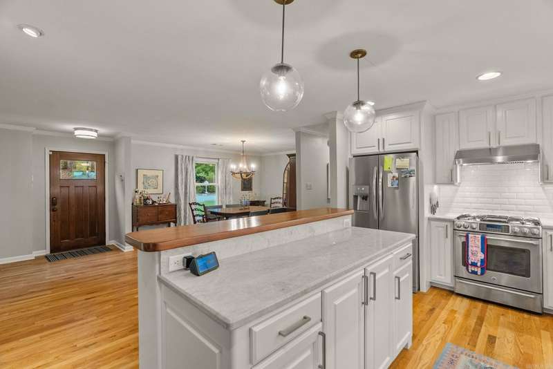 Beautiful 4 bedroom, 3 bath home on a private .75-acre wooded lot in the desirable River Ridge neighborhood. Features include an open floor plan, rear-split primary suite with wood-burning fireplace, and an eat-in kitchen with stainless appliances, quartz countertops, and gas range. Enjoy two living areas, a large den that opens to decks overlooking the backyard, and a separate oversized laundry room. A rare find with space, style, and location!