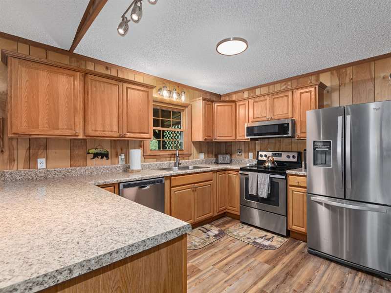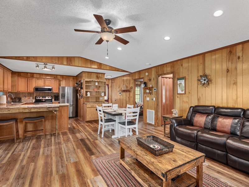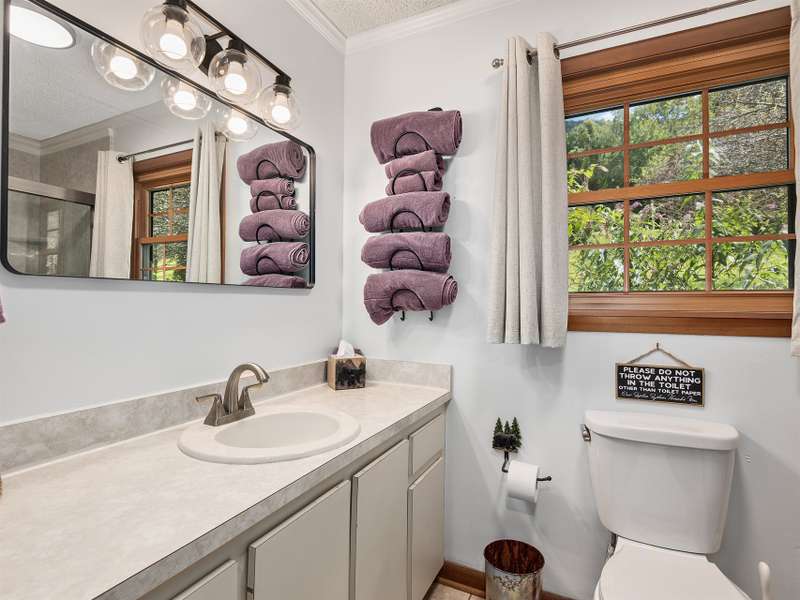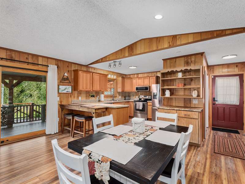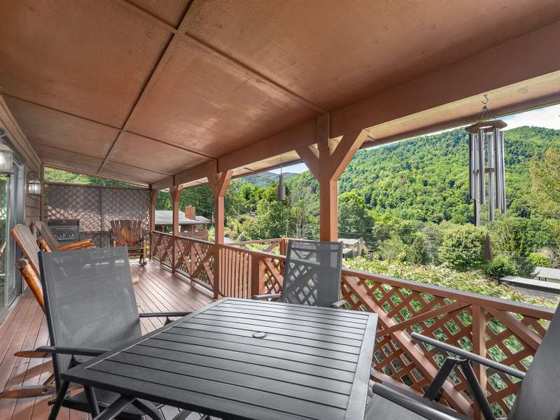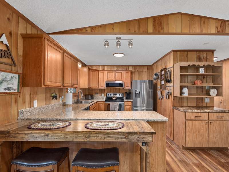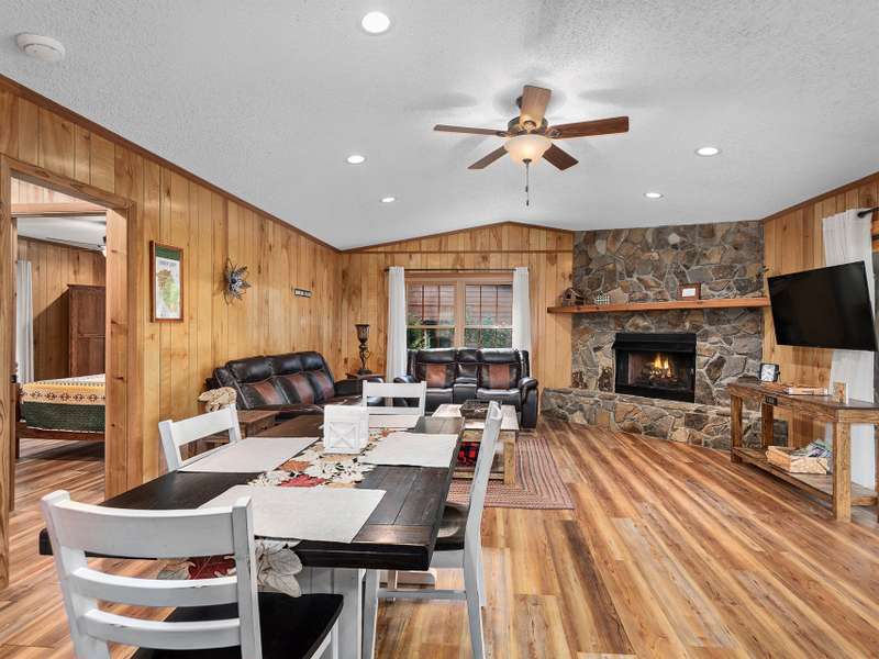 Updated & Move-In Ready! This charming, fully furnished home offers easy, one-level living and is being sold with all furniture and furnishings included. The spacious great room with rock fireplace and gas logs flows into a dining area, creating the perfect space for gathering and entertaining. Step through glass sliders from the living area to the inviting covered front porch and enjoy year-round mountain views. The generously sized bedrooms provide comfort, while the updated bathrooms include a brand-new walk-in shower. With paved access and driveway, this low-maintenance home is ideal for full-time living or a vacation retreat. The HOA handles lawn maintenance, water, and road upkeep?making life even easier. Located outside the city limits, you'll also benefit from county taxes only!