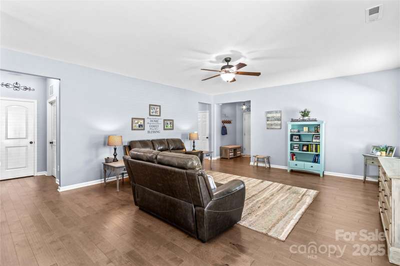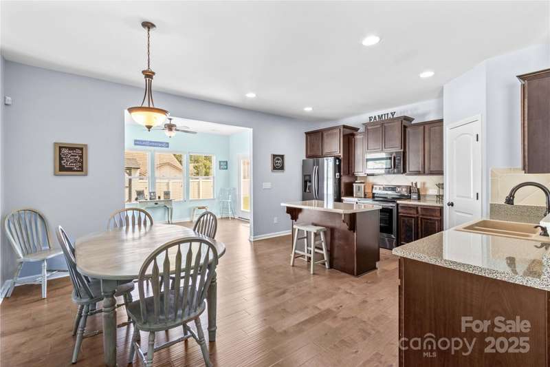 Pristine condition and like new Ranch Home in Hidden Lakes. Ready now, no need to wait. Very Close by Troutman and Main Street Shopping, Restaurants. Also Convenient to Lake Norman's State Park to enjoy Swimming, Camping, Fishing and Mountain Bike Trails. Close to I77 exit 45 makes commuting easy, to surrounding Cities. This Home features a 3 Car Garage that's 32' wide for excellent storage. Inside, gleaming pre finished Hardwoods throughout most of the Home. Neutral Paint. The Open Great Room overlooks the spacious Kitchen and Dining area. The Huge Kitchen Island creates additional prep space for meals. Stainless Steel Kitchen Appliances included. A Sunny Sunroom is perfect for Morning Coffee or an evening wind down. You'll love the Huge Private Primary Bedroom that overlooks the Back Yard. The ensuite Bath has a Soaking Tub and Shower combo. There's a Laundry Room conveniently located by the Primary Bedroom. Hidden Lakes offers a Pool, sidewalks and streetlights. A perfect Ranch Home awaits as your New Home!