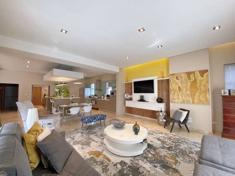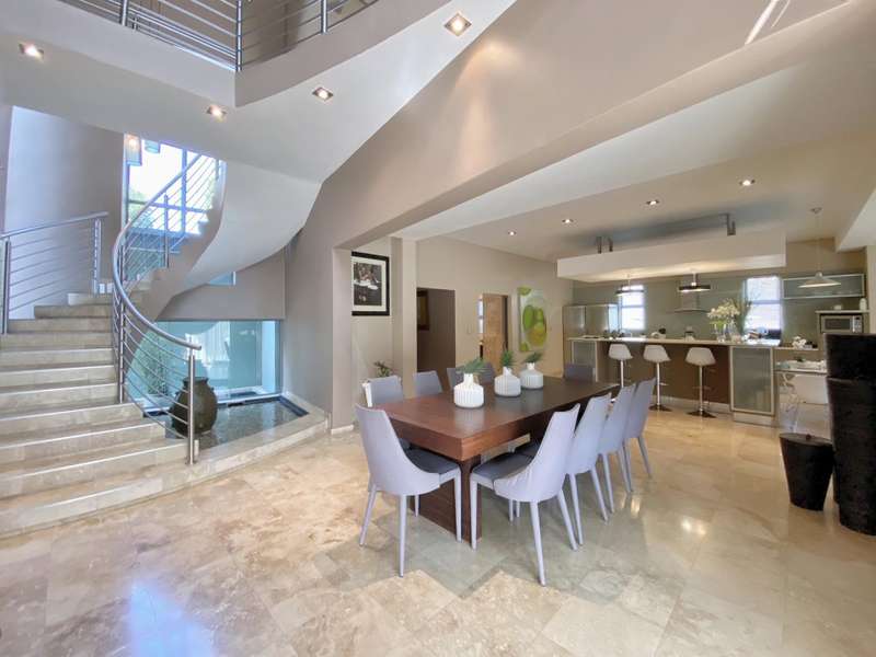 This modern, brightly-lit family home is nestled within the heart of Bedfordview and offers generous proportions for the growing family. For the family seeking open plan living with upmarket finishes encompassed by tranquil surrounds, this home has it all! Welcome family & friends through an open plan formal lounge with fireplace leading onto the dining room and modern kitchen.