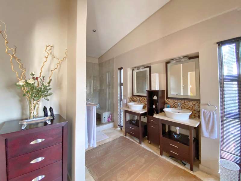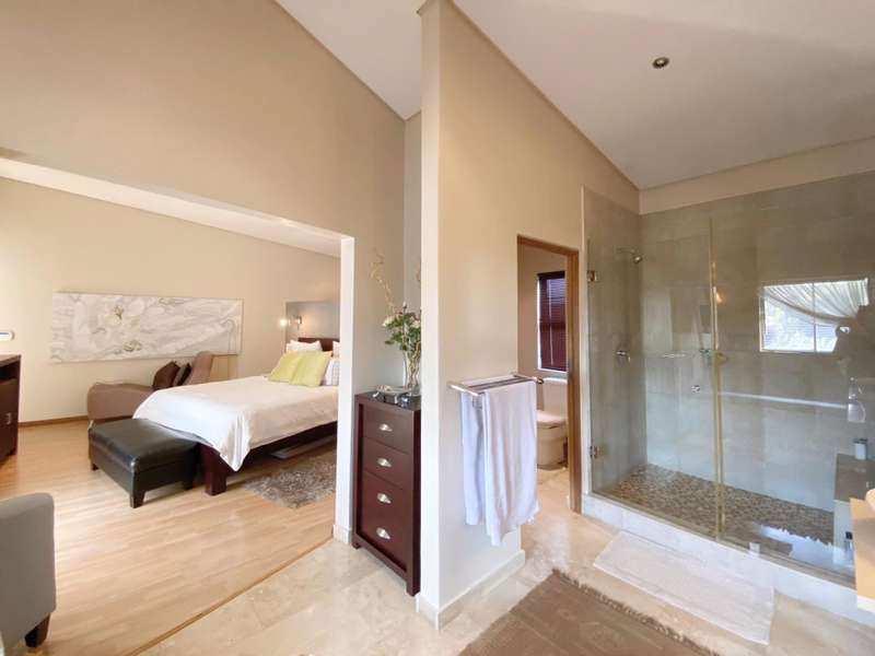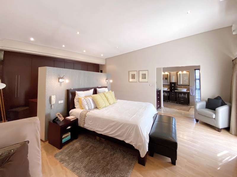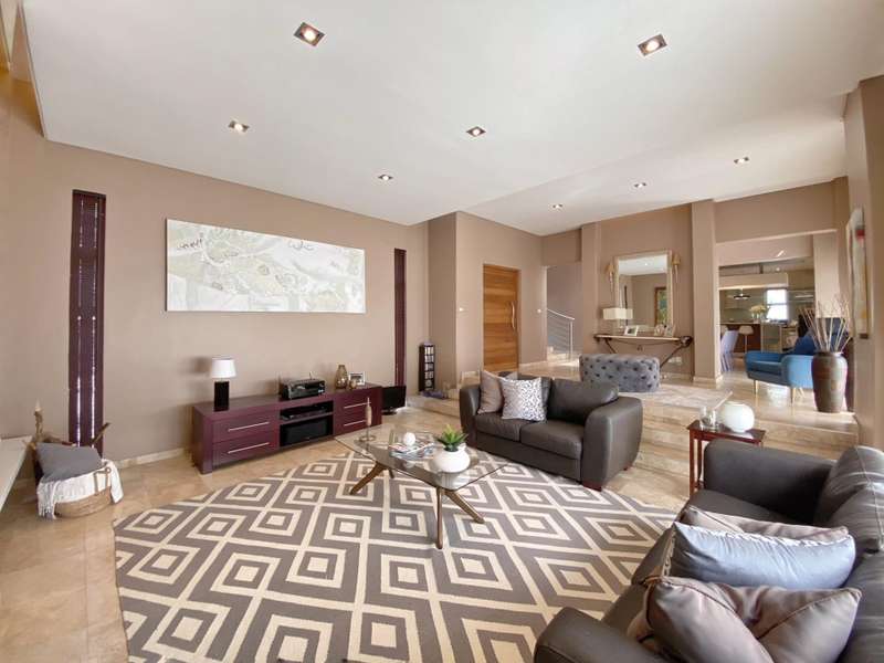 Upstairs lies the 4 bedrooms with en-suite bathrooms and balconies offering treetop views. The upstairs arrival lounge also offers additional cupboard space. With automated garaging for 4 cars plus additional parking, staff accommodation, irrigation and excellent security?Ǫthis home is beautifully appointed and in pristine condition.