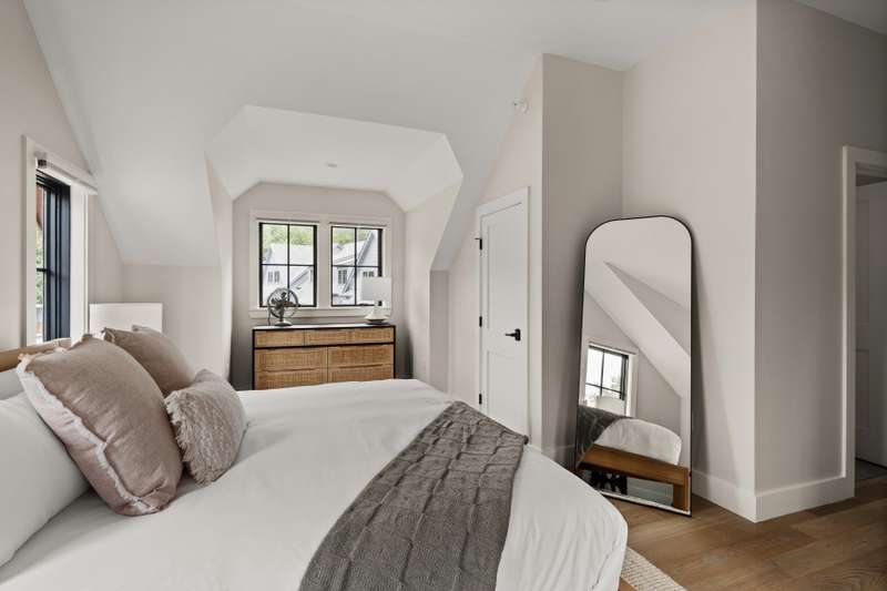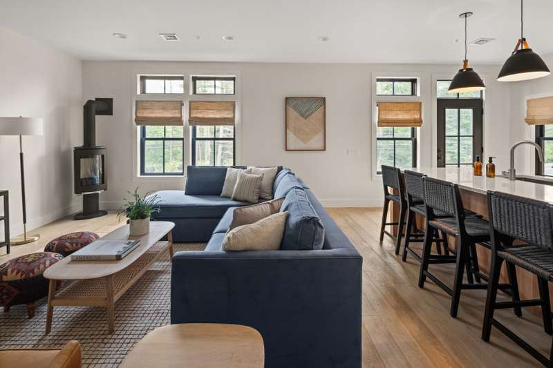 Minutes to Stowe Mountain Resort. Furnished and equipped 4 bedrooms 3 ½ baths 3,390 sq including a one car garage and additional ski sharpening/storage room. End unit looks up the Mountain Road to the slopes at Stowe Mountain Resort. Features include high ceilings throughout, central AC, heat pump with propane back up. Walk-in pantry. Living room has Jotul gas fireplace. The primary suite features 10 cathedral ceilings a soaking tub and shower. Lower level features high ceilings, 3/4 bath, 4th bedroom and large family room. Vermont Vernacular design of The Landing, by renown architect Sam Scofield, is in keeping with the original Stowe-A- Way antique farm house dating back to the 1800s. Stowe Mountain Resort 4.4 miles, Stowe Village 3.2 miles, BOS 3:15, BTV 45 minutes. On Mountain Shuttle bus route for easy access to Stowe Mountain Resort and Stowe Village. The Recreation Path is across the street. The Landing sits on 2.5 acres with over an acre of Common Area for homeown