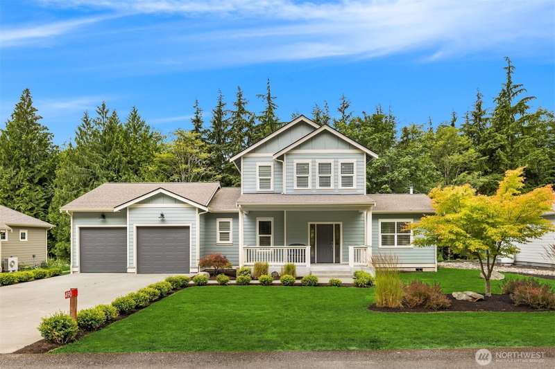 Enjoy all the benefits of Port Ludlow's South Bay while living in this light & bright home on a generous, sunny lot. The sleek luxe finishes throughout & a primary suite on the main floor make this home an easy choice. Tall ceilings & custom features like quartz countertops, stainless appliances & an attractive propane fireplace in the open concept living room give this gem timeless style. You will love the attractive, mature landscaping, the charming covered porch & the large, two car garage. Lives like new, a terrific alternative to waiting for a pre-sale home to be completed. Move into this gem right now & enjoy the rest of the summer & all the amenities this community affords. Tranquil neighborhood of well maintained homes.