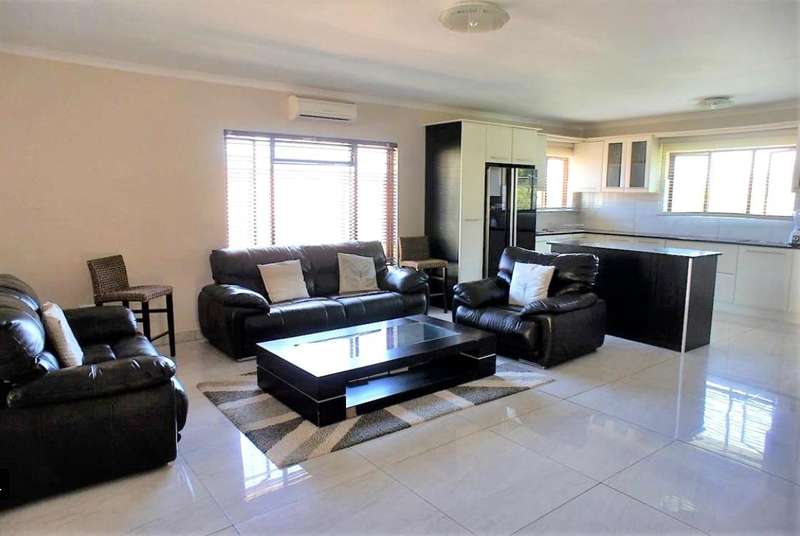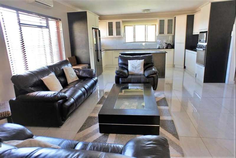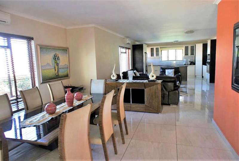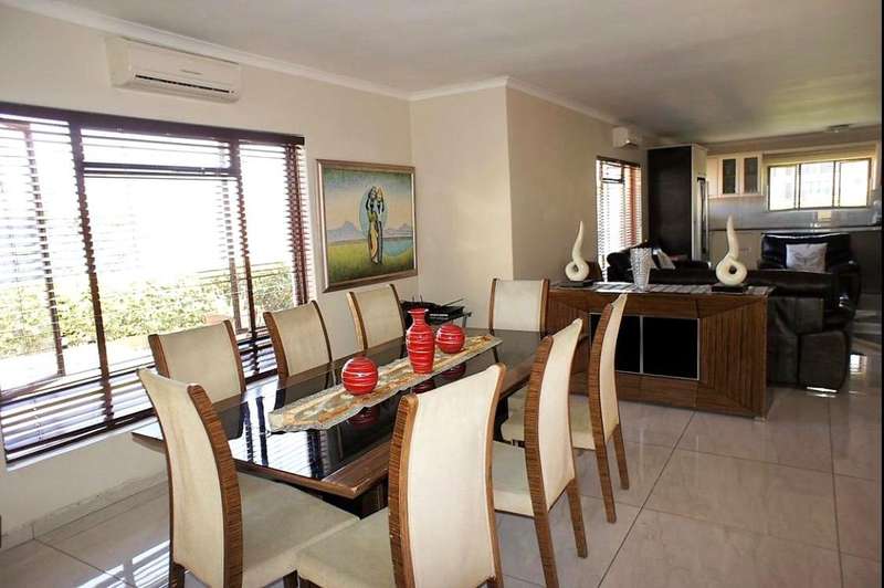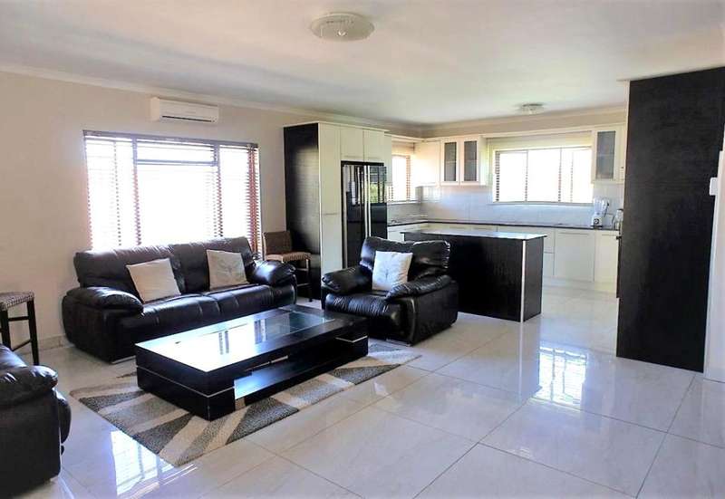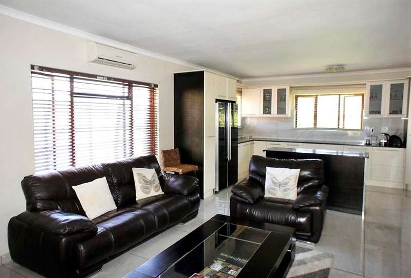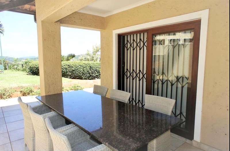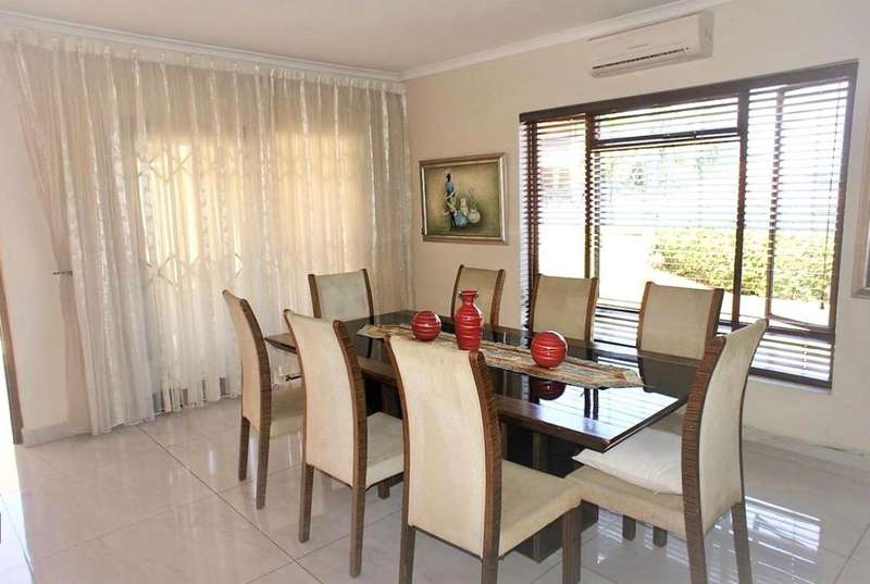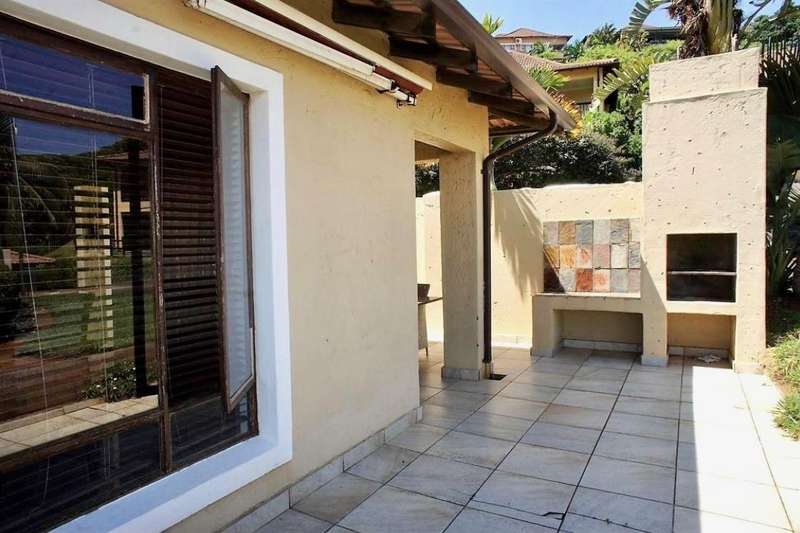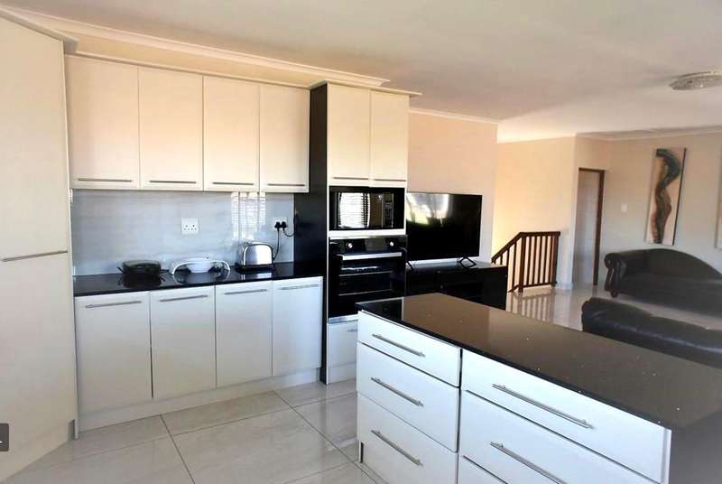Spacious double storey 4 bedroom townhouse in central Ballito complex. Upstairs is an open plan living area, well appointed kitchen, bedroom with en suite bathroom and guest toilet. There is also a shaded patio and entertainment area with built in braai. Three generous sized bedrooms and a second bathroom are downstairs. This property is pet friendly, has a low maintenance garden, aircon, double garage and is secure with a night guard. Conveniently located close to shops, hospital and schools