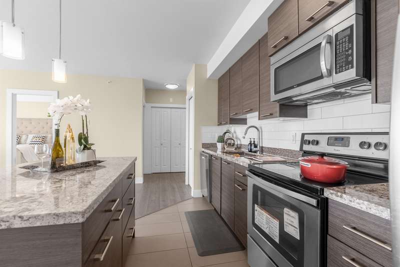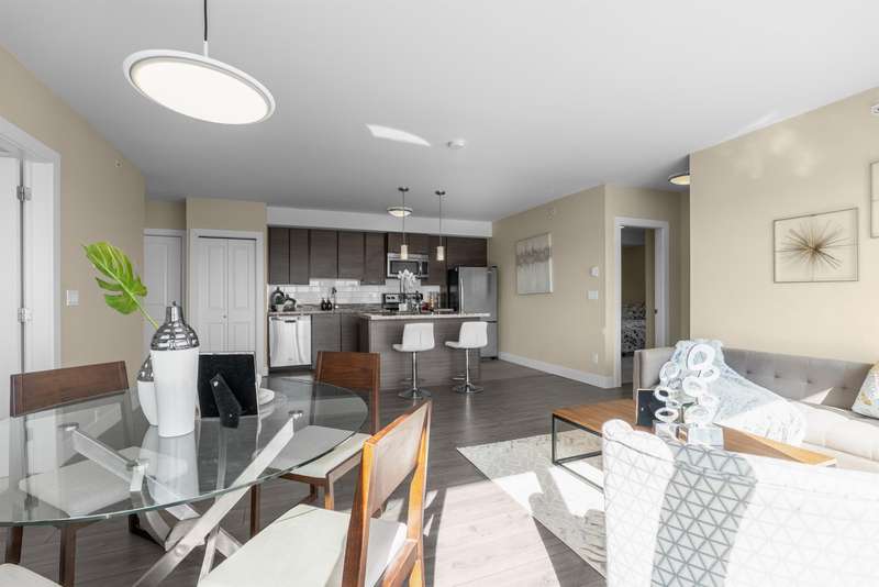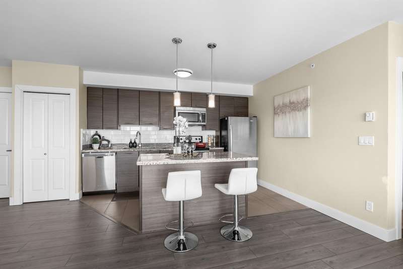 Welcome to VIBE, a modern West Coast Contemporary designed low-rise in the heart of Burnaby. Featuring 3 bedrooms,2 full bathrooms with floor to ceiling glass sliding doors opening to a 200sqft+ deck allowing plenty of sunlight. Enjoy a spacious and open floorplan boasting over 1065sf of living space. Offering a sizable kitchen, living/dining area, w/SS appliances, under-mount sinks, granite counters and a breakfast bar. Amenities include a party room w/full kitchen, gym space, massive rooftop patio and an outdoor garden for your evening stroll. Minutes from all transit Edmonds skytrain, schools Byrne Creek, grocery and shopping. Open house Aug 30 Sat 11:00-13:00