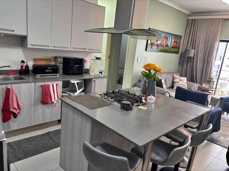Discover the perfect combination of style, comfort, and convenience in this modern ground floor apartment, ideally located within walking distance to major shopping centres, medical suites, gym, and a variety of retail outlets. Situated in a secure, upmarket estate, this home offers the perfect lock-up-and-go lifestyle for young professionals, couples, or small families. This beautifully designed apartment features an open-plan layout, with a lounge flowing seamlessly into a modern kitchen. The kitchen is a chef’s dream, boasting an eye-level oven, a sleek centre island with a gas hob, and ample counter space that doubles as a breakfast bar—ideal for casual dining and entertaining. Offering 2 bedrooms, both with built-in cupboards and shelves. The main bedroom features a stylish en-suite bathroom, while the second bathroom is thoughtfully positioned for guests or shared use. The estate offers top-notch 24-hour security with controlled access for peace of mind, as well as first-class amenities including a clubhouse, sparkling swimming pool, kiddies’ play area, and a restaurant on-site—everything you need for a relaxed, convenient lifestyle. This is more than just a home—it's a lifestyle upgrade in a prime location. Don’t miss your chance to make it yours. Book a private viewing today!