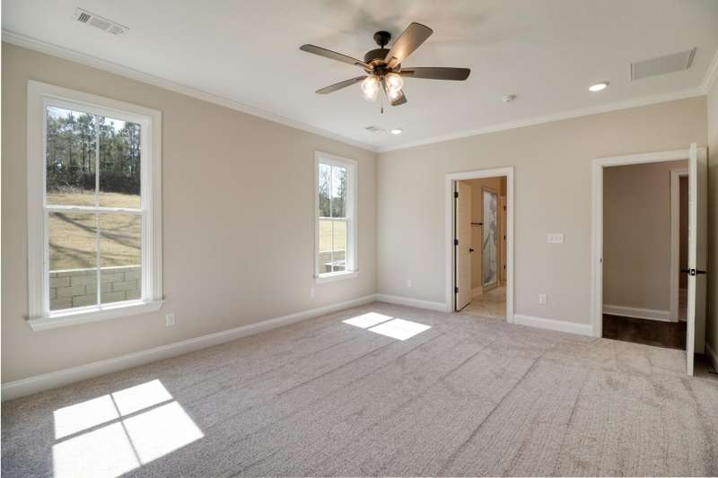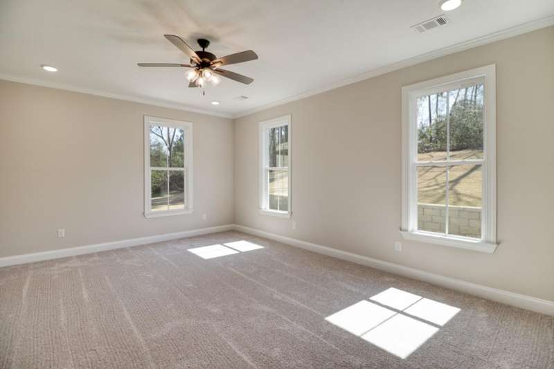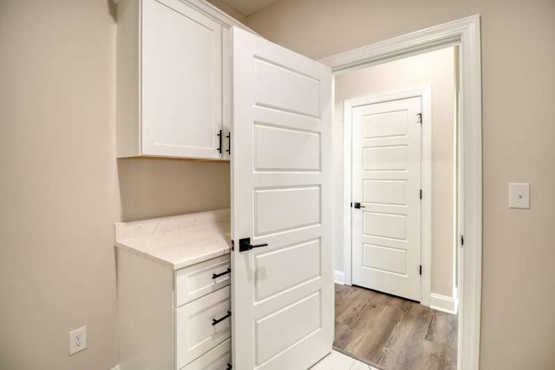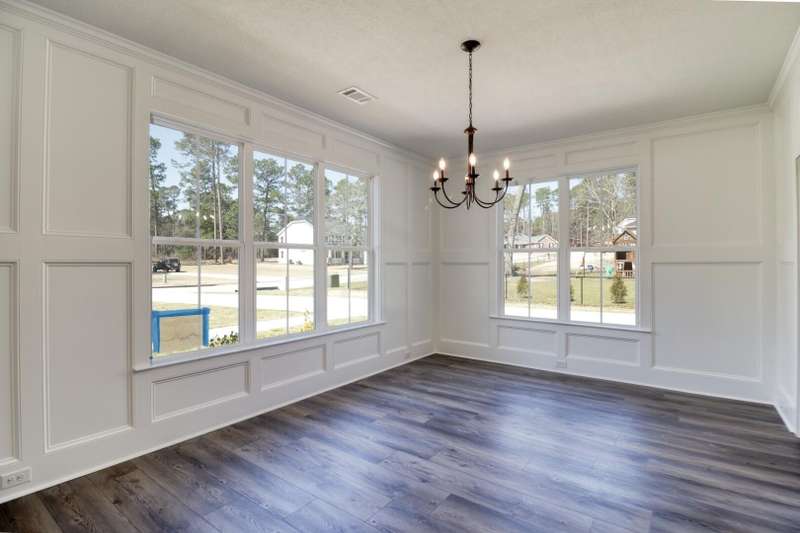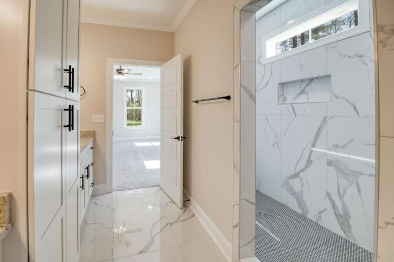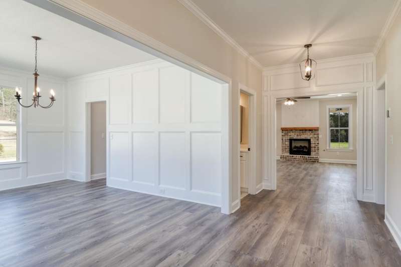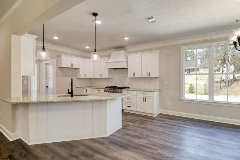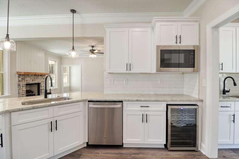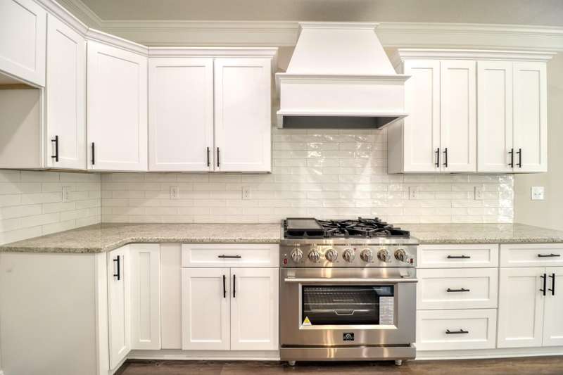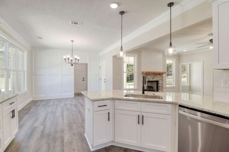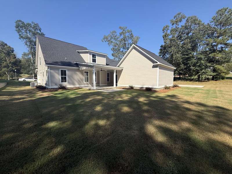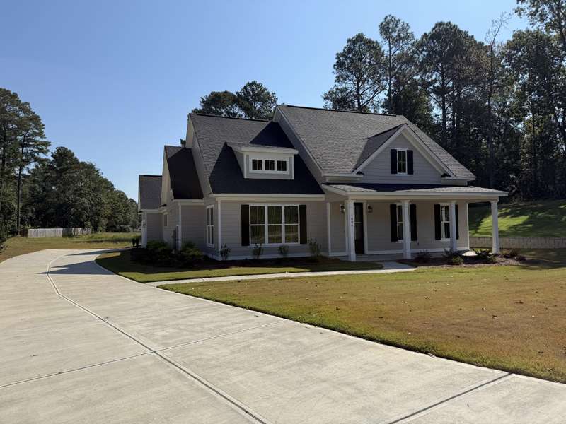 This new home features a formal dining room, a great room with brick fireplace that flows into the kitchen and breakfast area. The kitchen includes a wine fridge, gas stove with an exhaust vent, built-in microwave, dishwasher, butler's pantry with a sink, and an extra-large walk-in pantry with custom shelving. The primary suite offers a spacious walk-in closet with custom built-in shelving, an oversized tiled shower, a private water closet, and a dual-sink vanity. Upstairs, there are three bedrooms—one with a private bath and two sharing a Jack-and-Jill bath. Granite countertops run throughout the home, which is filled with natural light. The covered back porch and patio provide great outdoor space. Additional features include a two-car garage, a large laundry room with a folding counter, oversized front and back porches, and a fully landscaped yard.