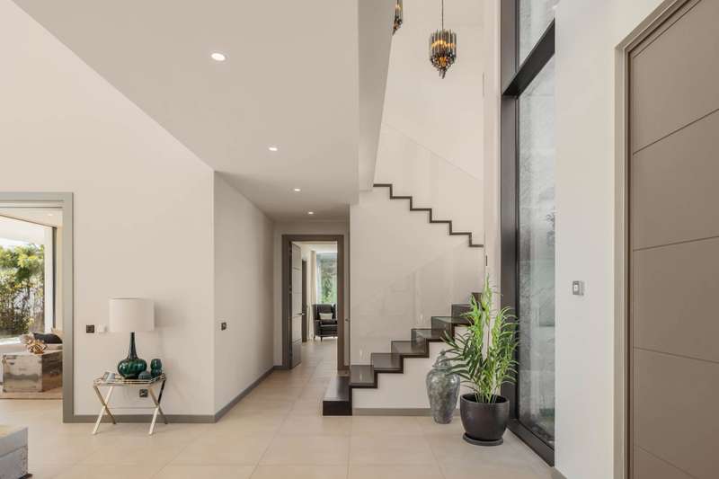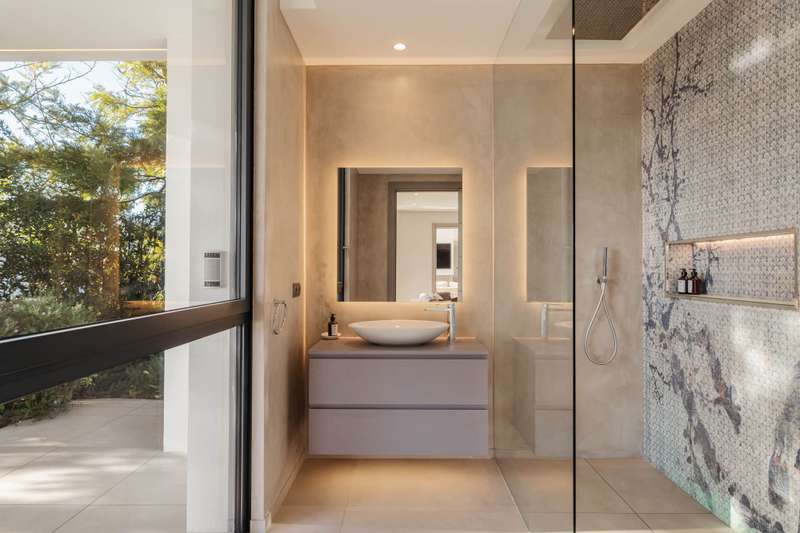 Designed by a distinguished architect, Villa Ciervo is spread over two levels with an impressive built area. It features five luxurious bedrooms, each with its ensuite bathroom, an additional guest toilet, and a guest apartment that matches the main villa’s standards. The villa offers a south-facing orientation that maximizes stunning panoramic vistas, showcasing the sea, mountains, and an inviting pool. Throughout are modern touches like electric blinds, a state-of-the-art alarm system, and an automatic irrigation system. Every detail reflects understated elegance, with top-tier Gaggenau appliances providing a touch of convenience. El Madroñal, where the villa is located, is one of the jewels in the area of Benahavís. Known for its luxury real estate, this neighborhood offers privacy and natural beauty. Tucked away in the hills above San Pedro de Alcántara, the area promises exclusive living with a touch of tranquility. The villas here, often Mediterranean in architecture, exist in h