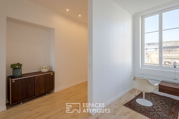 Located in a quiet area, very popular for its village life, with its shops and schools, this apartment with a certain charm, full of history, will seduce visitors for the quality of its renovation, the care taken in the finishes and for its cleverly orchestrated volumes.