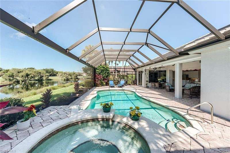 Skip the line, and head directly to the tee box with the option to purchase a full-golf membership to Shadow Wood Country Club with the purchase of this beautiful home! NO WAITLIST NECESSARY! Amazing WIDE Lake view to South #12's fairway. Recently painted, refurbished lanai cage with picture window and new roof. Whole house generator, StormSmart kevlar electric shutters. Electric and solar heat to the pool and spa. This 4BR+Den/3BA home is located on a super quiet lot in the highly desirable Cedar Glen neighborhood, which is minutes to the main clubhouse and all of its amenities. Natural gas generator. Private, quiet lanai. Fiber to the home provides lightning fast internet and television. Member owned Shadow Wood Country Club offers 54 holes of championship golf, 2 club houses, 9 Har Tru tennis courts, bocce, outdoor fire pits, access to a private beach club, fitness center, full-service spa, pickle ball, and private restaurant. New Lifestyle Amenity Center will add 2 resort style pools with zero-depth entry, lap lanes and dedicated kids pool, poolside restaurant & bar, 6 indoor pickleball courts, new racquet pro shop and a grab & go cafe. Great location close to shopping, airport, beaches and much, much more. THIS HOME IS A MUST SEE!