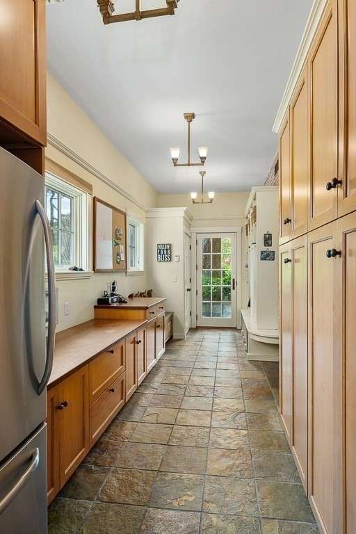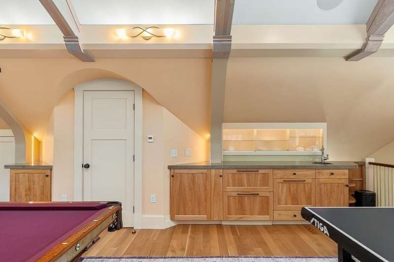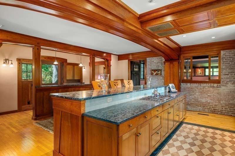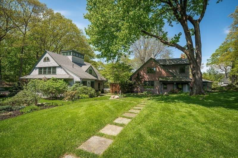 Nestled privately behind an iconic brick and stone wall is this stunningly renovated converted carriage house, guest cottage and 3-car garage. Following several architect-designed renovations, this elegant, craftsman inspired 5-bedroom, 3 ½ bath home showcases timeless design with custom cabinetry, hand carved millwork and exceptional details. Custom chef’s kitchen, adjoining family and breakfast rooms and magnificent living room with stone fireplace and a private office tucked behind. Large, elegant dining room with wet bar and enclosed brick terrace. The indoors seamlessly connect to the grounds with spectacular landscaping, stone terraces, outdoor fireplace and rock fountain. Extraordinary recreation room with wet bar and ½ bath. One bedroom guest cottage with private bath and kitchenette. Updated systems, central air, generator. Easy access to highway and trains, highly rated schools, and beaches nearby. Schedule your private tour of this one-of-a-kind offering.
