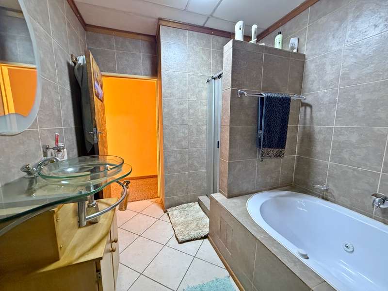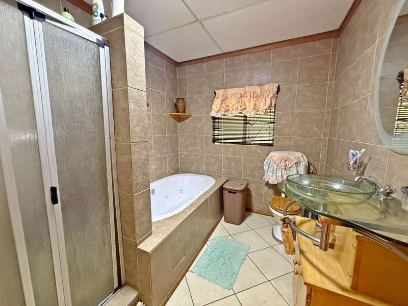 Step into this charming 4 bedroom home, boasting a warm and inviting atmosphere. The open plan lounge and dining area creates a sense of spaciousness, while the kitchen is fitted with classic built-in cupboards. The property features four generous bedrooms, with three bathrooms to complement them. A unique feature of this home is the potential for a flatlet, with one bedroom having its own entrance, kitchen, and en-suite bathroom. The yard is expansive, with ample parking provided by four carports. This home offers a perfect blend of character and functionality, making it an ideal choice for families or investors. Contact us to schedule a viewing today!