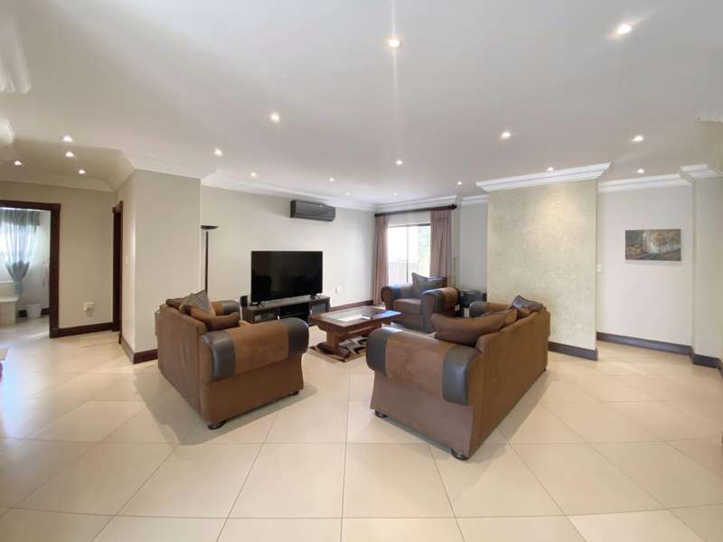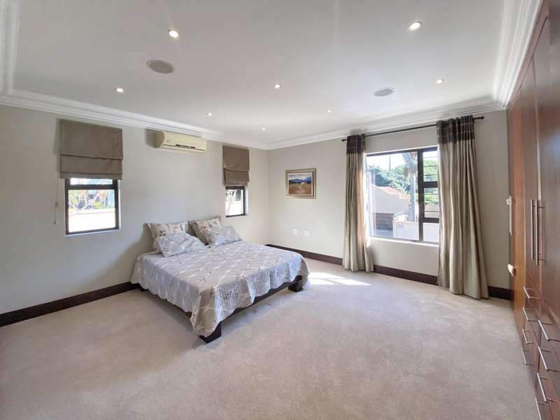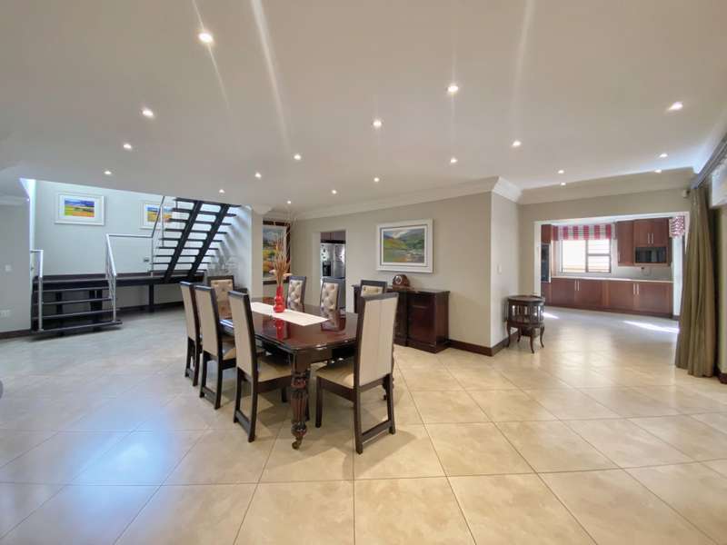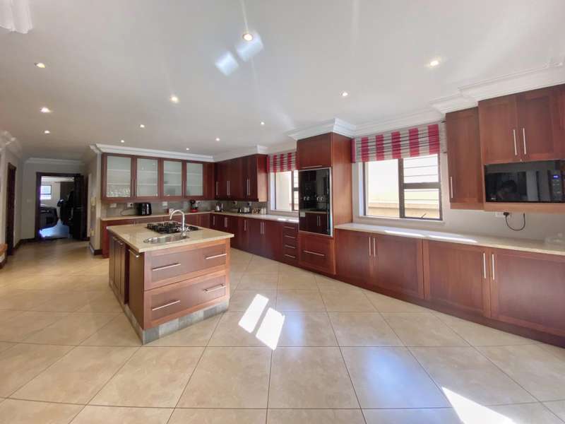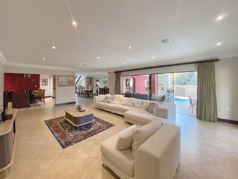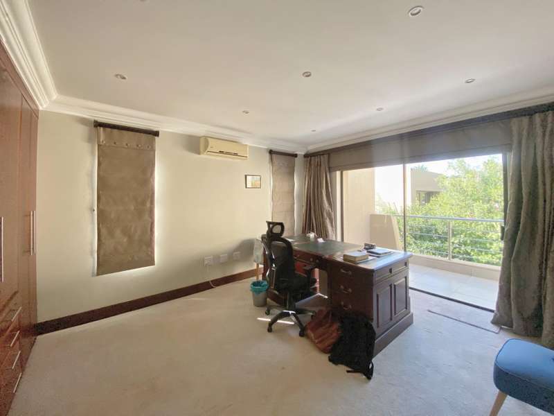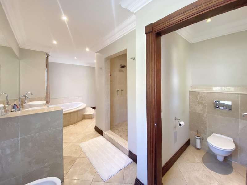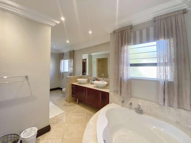 Set within an access-controlled cluster complex in a prominent position in Upper Bedfordview, this bright and modern family home boasts refined finishes throughout. Welcome upmarket living with well-proportioned, open plan receptions flowing effortlessly onto a brightly-lit covered patio. The entrance hall leads onto the spacious dining room leading onto the formal lounge and expansive warm wood kitchen. The kitchen is complimented with quartz tops, chrome finishes and a separate scullery. The kitchen offers good cupboard space and windows and doors leading onto the manicured surrounds with a sparkling pool. The 4 bedrooms are all located upstairs and offer 3 bathrooms (2 en suite) PLUS a family room with fitted study area. This generous home is also solar-powered and features piped sound, air-conditioning, staff accommodation and triple automated garages - all within a small cluster-style complex!