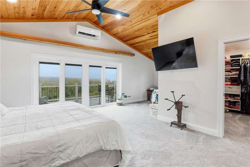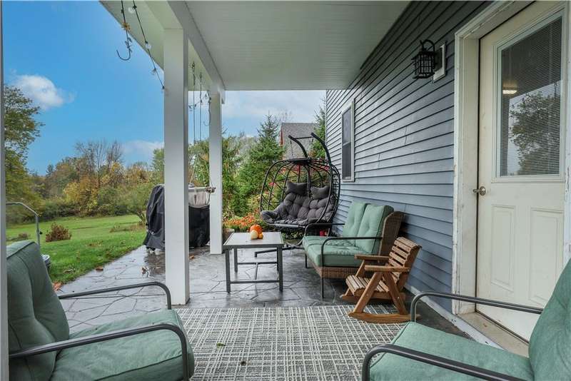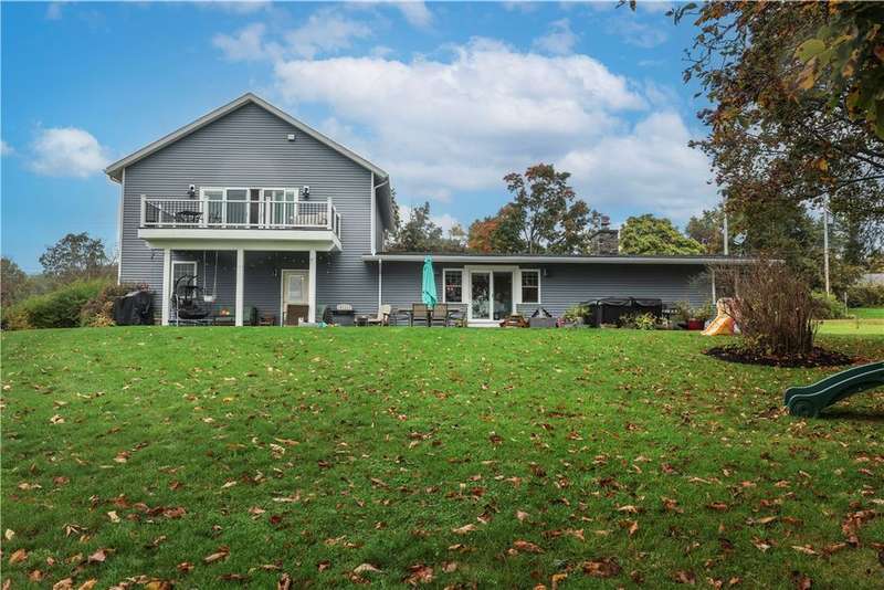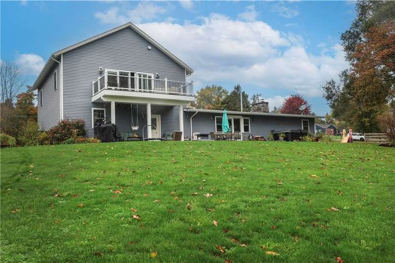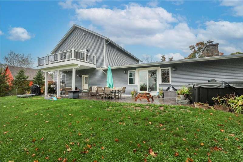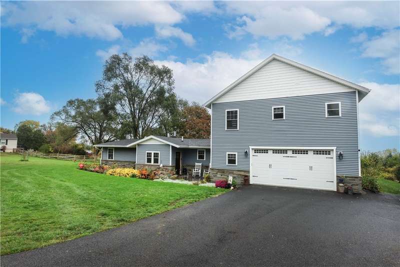 This well-maintained 4-bedroom, 2.5-bath home offers comfort, charm, and beautiful lake views. Step inside through the newly renovated mudroom featuring a sliding barn door and built-in bench. Gleaming hickory hardwood floors flow throughout the main level, where the kitchen serves as the heart of the home. Enjoy an oversized eat-up island, feathered granite countertops, maple cabinetry, and under-cabinet lighting?perfect for both cooking and entertaining. The living room is warm and inviting with custom built-in bookshelves, a cozy gas fireplace insert and sliding glass doors leading to the back patio and relaxing hot tub. The main level also includes two spacious bedrooms, a full bath, and a convenient half bath. The attached two-car garage connects to a large laundry and mudroom combo, ideal for everyday organization. An upper level, added in 2020, completes the home with two additional bedrooms. The primary suite features cathedral ceilings, a private balcony with stunning lake views, dual walk-in closets, and a spa-like ensuite bath with radiant heated floors and an oversized walk-in shower. Outside, you'll find lush, well-tended gardens, a storage shed, and peaceful surroundings. Located close to Lansing schools and just 10 minutes to Cornell University, this property perfectly combines tranquility and convenience.