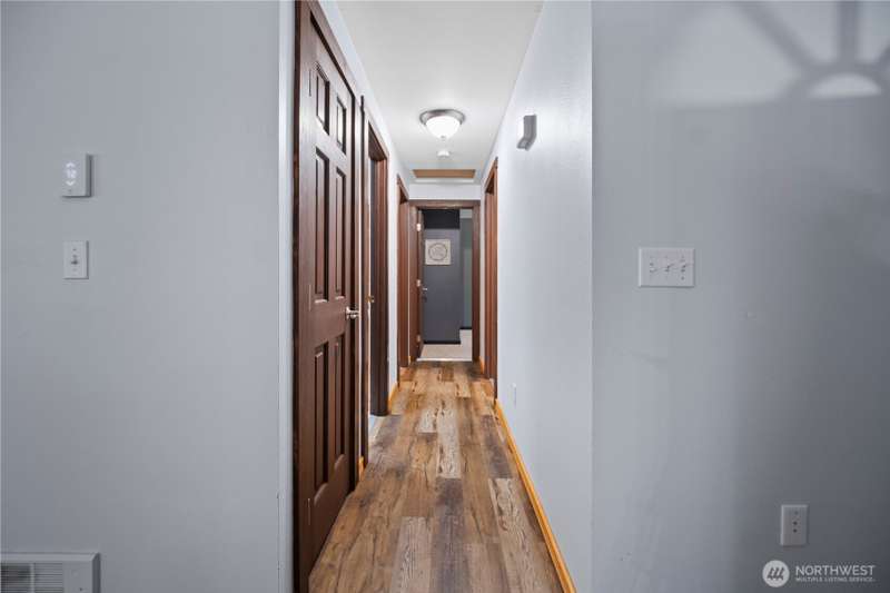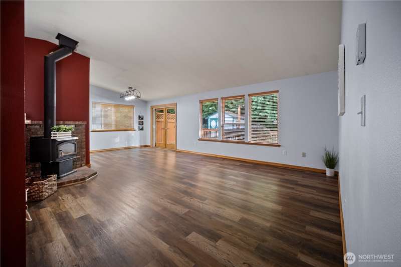 Beautifully updated 3-bed, 2-bath rambler offering style and comfort. Vaulted ceilings, fresh paint, new flooring, and abundant natural light create a welcoming atmosphere. Enjoy newer fixtures and a cozy wood-burning stove. The spacious kitchen boasts ample cabinetry with all appliances included. Upgrades include brand-new solid core wood doors and elegant trim throughout. The primary suite features its own ensuite bath. Step outside to a large, freshly painted back deck perfect for entertaining, overlooking a lush and private lot. Tucked on a quiet dead-end street, yet conveniently close to a bus stop and just minutes from county beach access, this home blends peaceful living with accessibility.