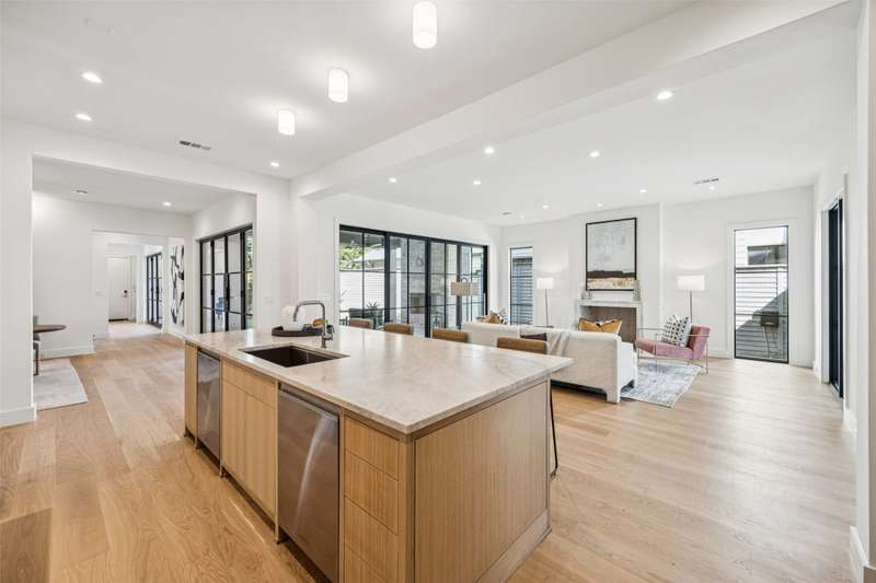 Nestled on a quiet, tree-lined street in the heart of Lakewood, this stunning new construction by Dallas Newport Group combines timeless curb appeal with thoughtful modern design. A welcoming front porch leads into a bright, open layout where the kitchen, dining, and living spaces flow seamlessly together. The kitchen is a true showpiece, featuring a built-in refrigerator, abundant custom cabinetry, a scullery, and a butlers pantry that connects to the formal dining roomperfect for entertaining. Walls of windows and sliding glass doors fill the main living area with natural light and open to the covered patio, complete with a cozy fireplace and built-in grill for year-round enjoyment. A secondary living space at the back of the home offers flexibility as a den or private office, while a first-floor guest suite with an ensuite bath provides comfort and privacy for visitors. Upstairs, the oversized primary suite offers a luxurious retreat with a spa-inspired bathroom featuring dual vanities, a soaking tub, a spacious dual-head shower, and a custom walk-in closet with built-ins. Three additional bedrooms, each with ensuite baths, a full-size laundry room, and a large upstairs living area complete the second level. With meticulous craftsmanship, modern finishes, and an ideal Lakewood location, this home blends sophistication, comfort, and functionality in every detail.