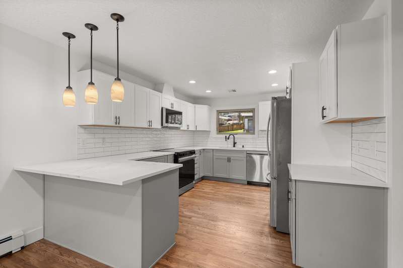 Down to the studs remodel in Whitworth Terrace! This is truly a no-step daylight walkout rancher with gleaming brand new (real) hardwood floors and all new bathrooms. Lots of square footage and bedrooms. The home has been used as an adult family home in the past and would be easy to license again with the state. The kitchen is brand new with quartz countertops and stainless appliances. The covered deck spans much of the back of the home. Great neighborhood just above Whitworth University, and close to Costco, Walmart, Fred Meyer, Chick-fil-A, what more do you need?