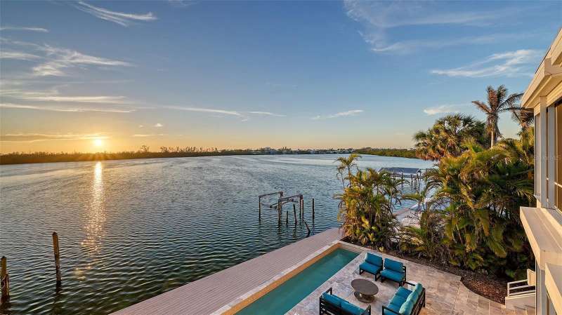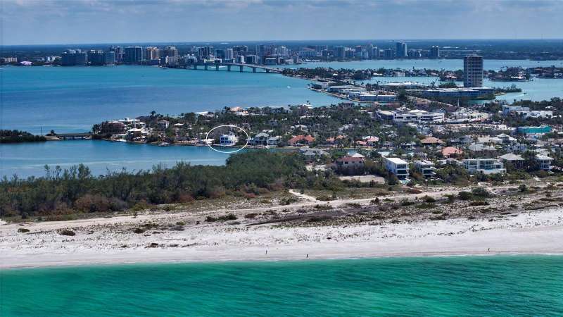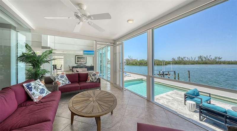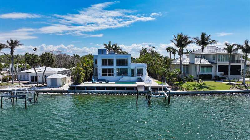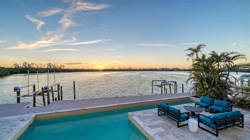 Owner Will Entertain Offers. A Rare Waterfront Sanctuary on St. Armands – Unrivaled Views, Elegant Design, Exceptional Location. Perfectly positioned on 110 feet of boating water, this stunning coastal modern residence offers captivating open views of Pansy Bayou with a rooftop glimpse of the Gulf of Mexico. Just two blocks from the world-class dining and boutiques of St. Armands Circle and moments from the sugar sands of Lido Beach, this home blends architectural elegance with effortless coastal living. Floor-to-ceiling windows and soaring ceilings flood the interior with natural light, showcasing breathtaking water vistas from nearly every room. Thoughtfully designed for both everyday comfort and grand entertaining, the open-concept layout features 4 spacious bedrooms and 4 bathrooms—including a luxurious primary suite with a private sunroom/home office. The kitchen is a chef’s dream, outfitted with top-of-the-line Thermador appliances, including a professional-grade 6-burner gas range, wine cooler, and newer refrigerator. Outdoor living is equally impressive with a resort-style pool deck, lush mature landscaping, and a rooftop terrace offering unforgettable sunsets over the Gulf. Meticulously maintained and move-in ready, the home includes a new roof (2024), recently replaced seawall (2017), dual-zoned Rheem A/C systems, electric hurricane shutters, whole-home speaker system, and a secure gated entrance for ultimate privacy and peace of mind. FEMA-compliant with the main living level elevated 12.1 feet above base flood elevation, this property offers both safety and sophistication. Located directly across from a protected bird sanctuary, this peaceful retreat is a haven for nature lovers—where dolphins and manatees are frequent visitors.
