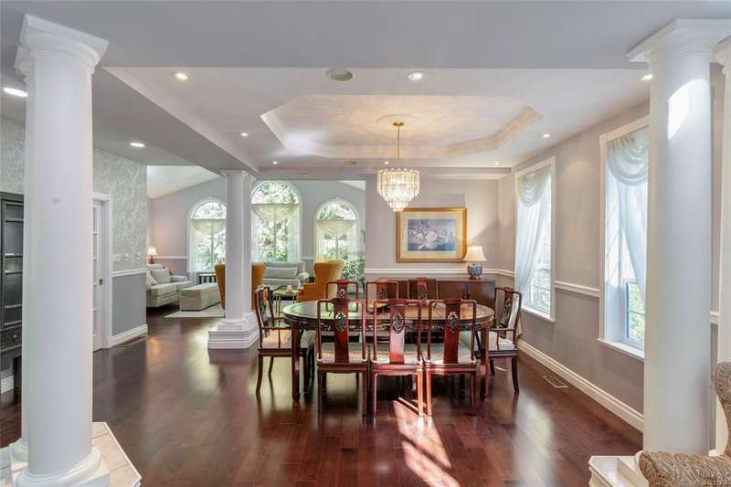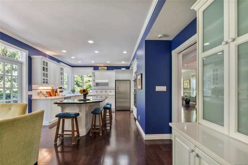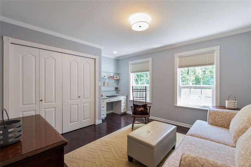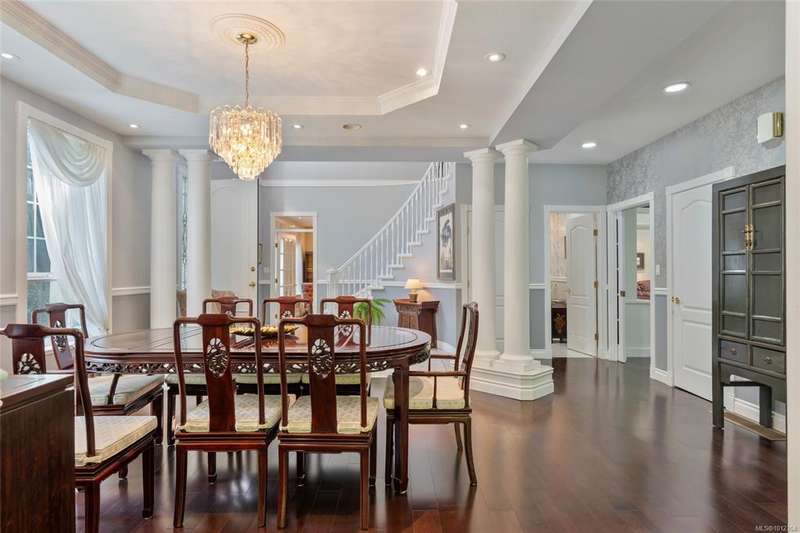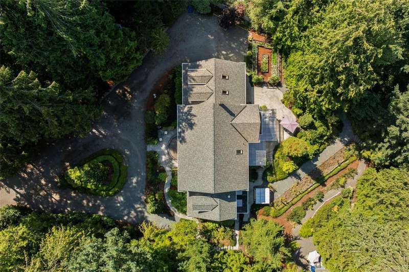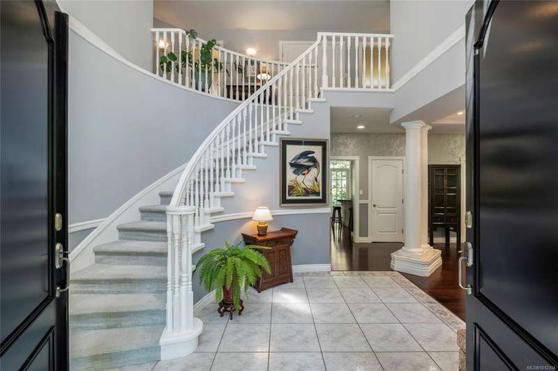 Welcome to this stately Colonial-style residence on 1.39 acres of manicured grounds in a prestigious estate setting. A gated entry leads to a private roundabout drive, courtyard, and oversized double garage w/ workshop space. Spanning 5,091 sq.ft the home offers 5 beds, 5 baths, a home office & bonus room. The grand 18’ vaulted foyer w/ classical columns & sweeping staircase makes a striking impression, leading to a 13’ vaulted living room w/ gas FP. The formal dining room is framed with elegant columns, while the kitchen adjoins the family room w/ coffered ceilings & French doors opening to partially covered custom stone patio that overlook the gardens — ideal for year-round entertaining. The primary suite is a retreat w/ spa-inspired ensuite & walk-in closet. A self-contained in-law suite w/ garden room, separate entrance & parking is ideal for extended family. Outdoors, enjoy walking paths, sun & shade patios, & a fenced vegetable garden, w/ newer roof & heat pump for peace of mind.