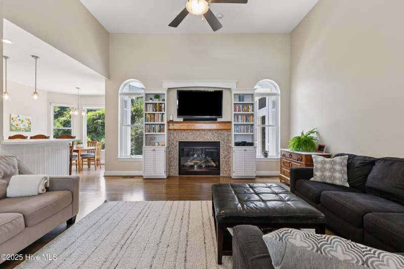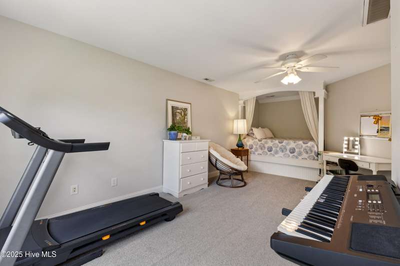 Coastal living at its finest in the heart of Pecan Grove Plantation!Welcome to 107 N. Stargazer Courtan inviting and well-maintained home nestled on a private, beautifully landscaped lot just under half an acre. Located on a quiet cul-de-sac in one of Hampstead's most desirable gated communities, this home offers both serenity and resort-style amenities.Built in 2005, this thoughtfully designed home features a flexible layout with comfort and functionality in mind. The main floor includes a spacious primary, with direct access to the back deck, and bathroom. Two additional bedrooms and a full bath are also located on the main floor. Upstairs, you'll find a fourth bedroom, a full bath, and two generous bonus rooms perfect for a home office, gym, playroom, or guest suite. One bonus room is temperature controlled by a split-unit.The main living area is open and welcoming, with a cozy fireplace surrounded by built-in storage and bookshelves. (Sony TV and Vizio sound system in living room convey). The beautiful kitchen offers gas stove top cooking, Step outside to your screened-in patio and private back deckideal for relaxing or entertaining. The patio features a beautifully tiled, recessed hot tub (seller is offering an $1000 credit for motor replacement or removal, per buyer preference). The yard is surrounded by mature landscaping, including a seedling from the famous live oak at Airlie Gardens, creating a peaceful, natural backdrop.Additional features include: Oversized, temperature-controlled double garage with split unit (not included in sq. ft) Encapsulated crawlspace with dehumidifier Detached storage shed Fresh landscaping and curb appeal.Pecan Grove Plantation offers an unmatched coastal lifestyle with amenities such as a community pool, tennis/pickleball courts, a clubhouse, fitness center, boat ramp & kayak launches.