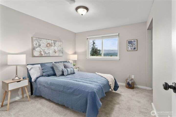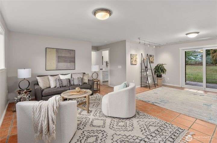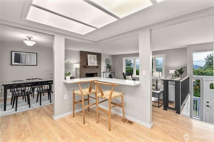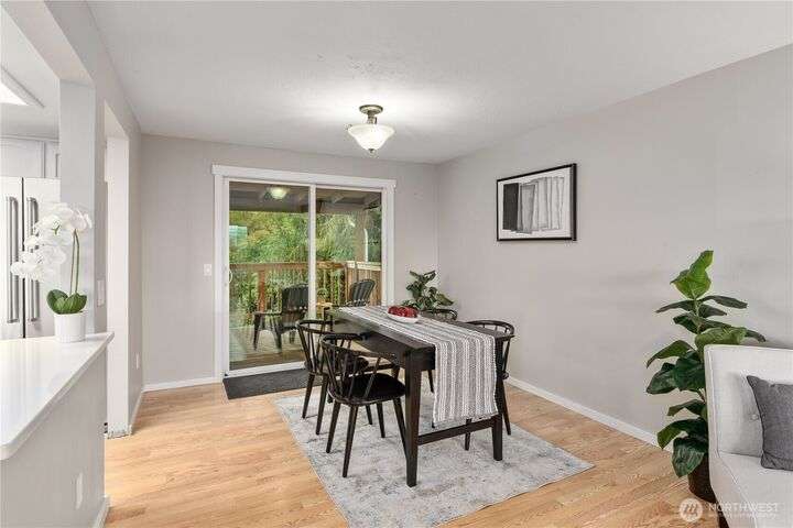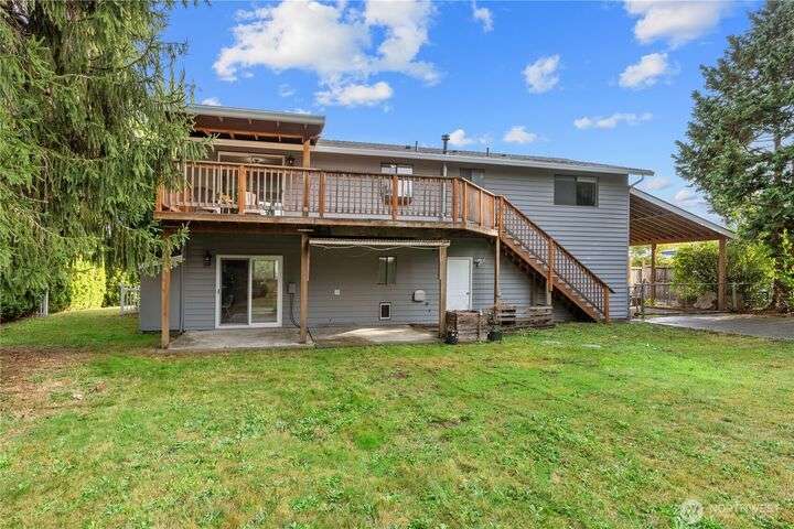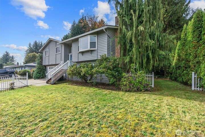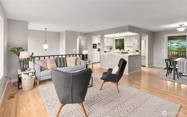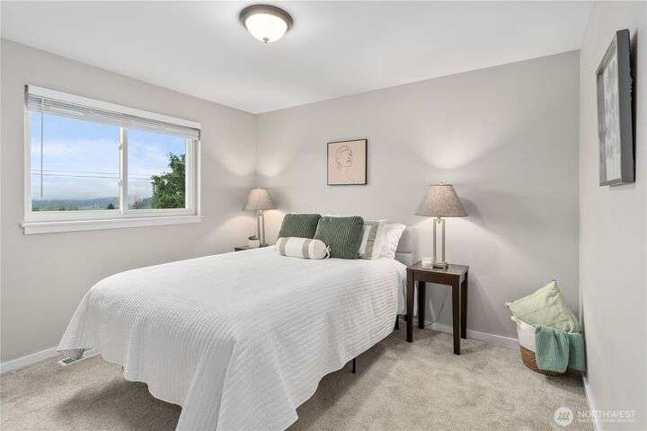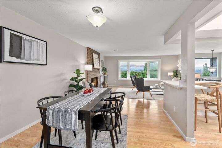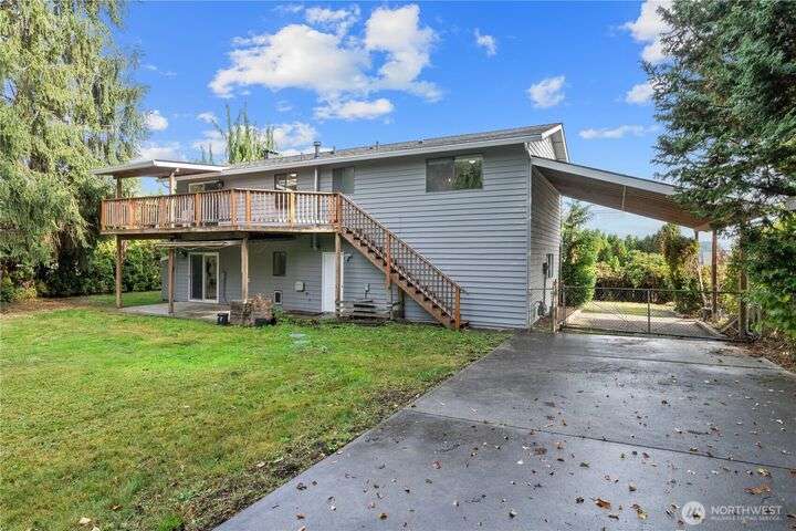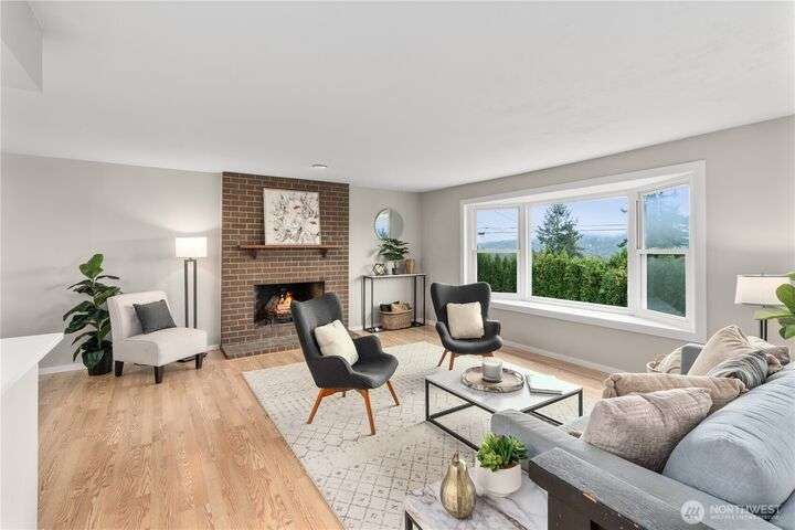 Nicely updated home on a gorgeous ½-acre with mountain and valley views. Warm hardwoods and a fireplace anchor the living room; the dining area opens to an expansive deck. The open kitchen has quartz counters, breakfast bar & stainless appliances. 3 bedrooms/2baths on main level including owners en-suite. Upgraded baths, with new fixtures, premium tile floors and shower walls, and sleek quartz countertops. Spacious lower-level family room with a 3rd bath. Large deck overlooks the fully fenced, private level backyard with room for pickleball/basketball & gardens. Oversized 2-car garage, covered RV parking & a mature apple tree and new roof! Quiet dead-end street with a rural feel, yet minutes to amenities & commuter routes.