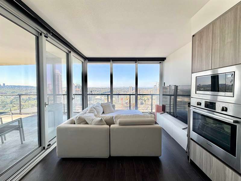 Discover Hillside West by Concord Pacific - a 736 sqft 2BR/2BA upper corner unit featuring a spectacular wraparound patio with panoramic city views. Floor-to-ceiling sliding glass walls create a seamless indoor-outdoor living experience. This luxury home boasts central A/C, high-end Bosch appliances, quartz countertops, soft-close cabinetry, and marble finishes throughout. Enjoy premium building amenities including 24/7 concierge, fitness center, theater room, pet spa, and EV-ready parking. Ideally located near Brentwood shops, dining, SkyTrain, and top schools. Includes 1 EV-Ready Parking Spot.
