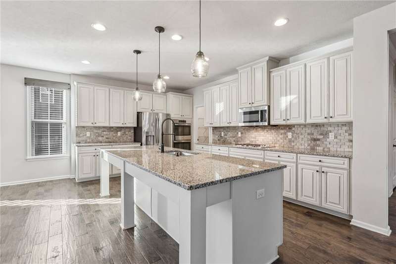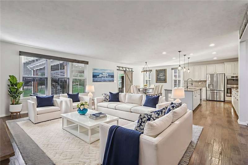 Welcome to 4462 Walnut Ridge, a stunning 4-bed, 5-bath home with a 3-car garage and open floor plan. The living room features a gas fireplace and flows into the dining area and gourmet kitchen with granite countertops, stainless steel appliances, walk-in pantry, and soft-close cabinetry. A private den with French doors, engineered hardwood floors, and elegant mouldings offers space for a home office or playroom. A mudroom with built-in storage is located at the garage entrance. The dining room opens to a concrete covered patio with sun shades, recessed lighting, ceiling fans, and serene views of the fenced backyard. Upstairs, the primary suite boasts 2 walk-in closets and a spa-like bath. Three additional bedrooms and two baths, a study nook, and laundry room complete the second floor.The finished lower level includes a game room with live edge bar and barrel sink, an exercise room, and full bath. A truly spectacular home?where luxury, comfort, and convenience merge in perfect harmony.