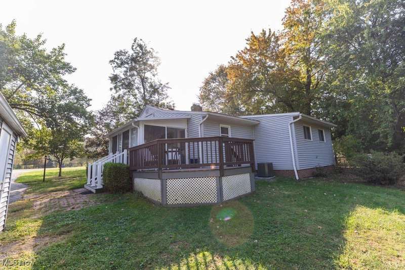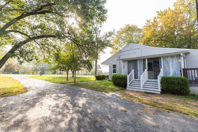 Welcome to 7828 Lewis Rd in Olmsted Falls sitting on just about 1 acre with woods in the back yard and 2 doors down from Olmsted Falls East River Park and a short stroll from downtown Olmsted Falls. Enter in the front door of this 3 bed, 2 bath ranch and notice the open concept living room with fireplace that features original hardwood floors throughout. This opens to the formal dining room that leads to to the kitchen with plenty of cabinets and counter space and includes all appliances as well. The laundry room is off of the kitchen and heated 3 season room. There is an owner's suite with private bathroom and 2 closets. There are 2 additional spacious bedrooms with a shared full bathroom. Off of the 3 season room is a deck that is perfect for entertaining with nice views of the wooded backyard that has a large 2 car garage and shed. Recent improvements include; roof 2017, Septic system 2019 and serviced last in May 2025, furnace and AC 2023. Call today to schedule your tour to see all that this wonderful home has to offer!