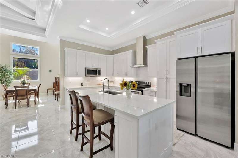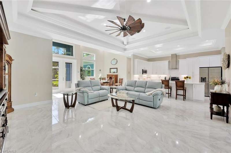 Gorgeous Golden Gate Estates single family home is available for this season. This spacious new home has 4 bedrooms, den, 3.5 baths, and has stunning upgrades everywhere you look! Start with the curb appeal and lush landscaping, then go inside where you will find a light and bright open floor plan with marble floors, huge great room, white kitchen with island, Sonas surround sound system, custom ceilings and fans, and bathrooms so inviting you'll think you were in a spa. The private backyard boasts a grand covered lanai with saltwater pool, sun shelf, waterfall, grill, and a comfortable dining/entertaining area. There is also a two-car garage and the house has a complete reverse osmosis water system. This is your perfect nature inspired Naples retreat!
