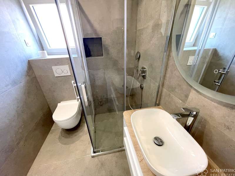 Discover a new, modernly equipped apartment in Zaboric, a quaint and picturesque town just 150 meters from an idyllic beach. This apartment is located in a newly constructed residential building that houses a total of 5 units, situated in a prime location 10 km from Šibenik.