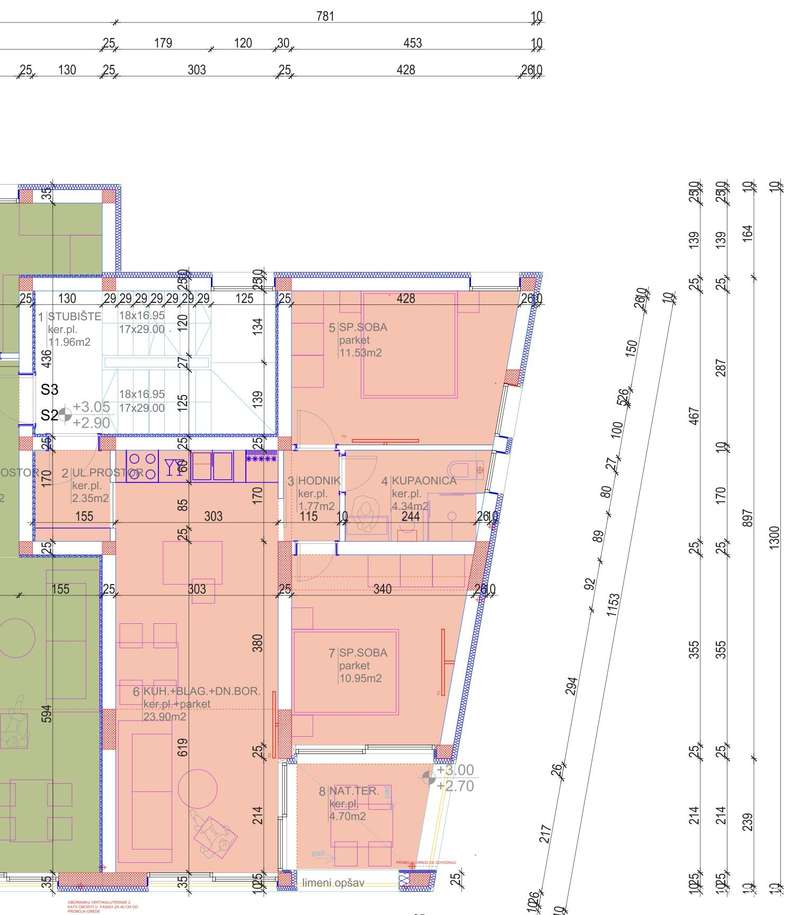 Apartment S2 - 1st Floor - Living area: 53.19 m2 (2 bedrooms + 1 bathroom) + covered terrace (4.70 m2) + outdoor parking space; total net area: 57.17 m2 = €255,000
