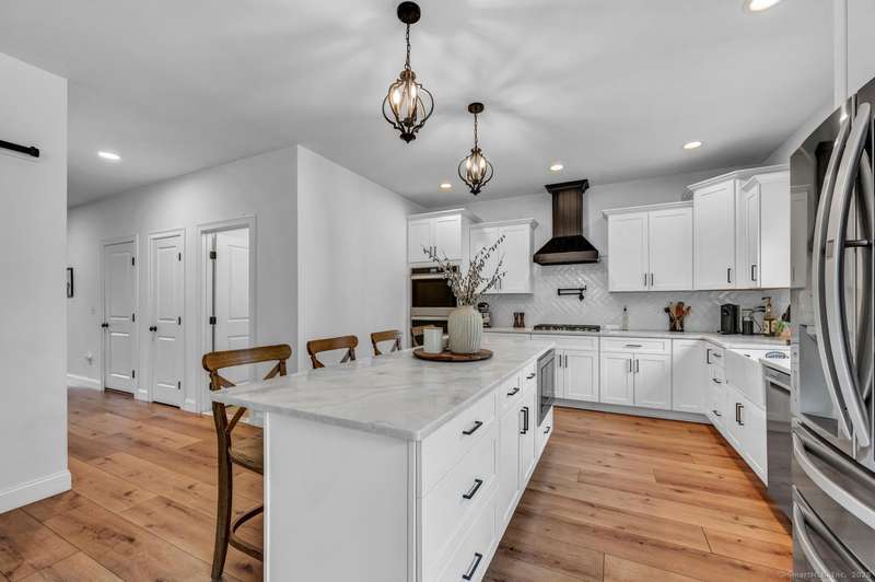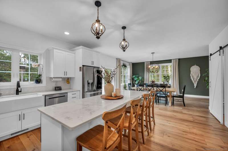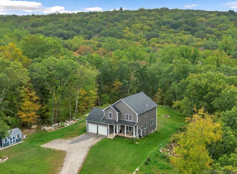 OFFER INSTRUCTIONS AVAILABLE IN AGENT REMARKS! Basically like new construction- built in 2022! This designer finished home offers pure privacy on over 2 acres & is a true showstopper. Featuring 4 bedrooms and 2.5 baths, the open-concept layout is loaded w/ on-trend design & luxury details that impress at every turn. An inviting front porch welcomes you into the living room, highlighted by a cozy stone fireplace. The spacious dining area flows seamlessly into the kitchen & offers sliders to the rear deck plus a walk-in pantry. The stunning kitchen showcases white cabinetry, gorgeous quartz countertops, farmhouse sink, & large island w/ a built-in microwave. A first-floor half bath + laundry add convenience. Upstairs, the primary suite is a retreat of its own with abundant closet space and a spa like bath designed for pure relaxation. Three additional bedrooms complete the second floor. The lower level offers tons of storage and endless potential with epoxy flooring, a wood-burning stove