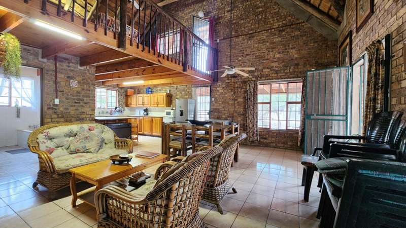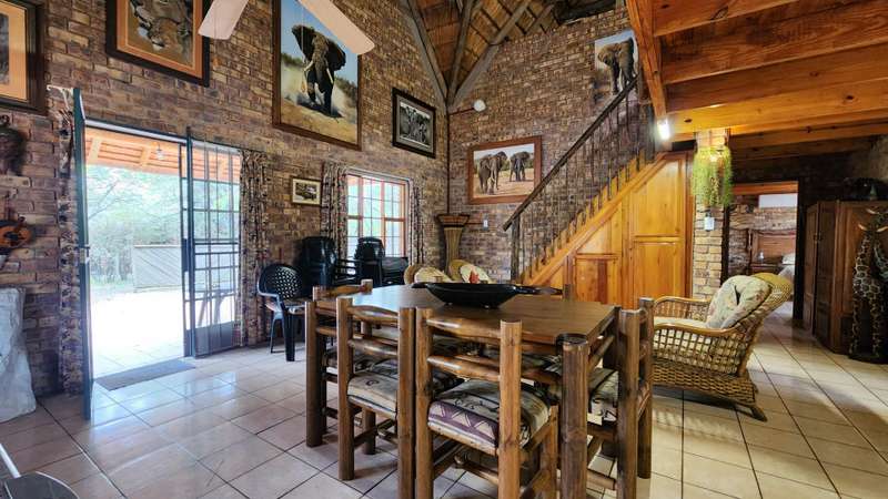 HOUSE PLUS GUEST COTTAGE Located a mere 500m from the Crocodile river this house has space for the whole family plus family and guests. The main house consists of open plan living , dining and kitchen area. On the ground floor is 2 large bedrooms, 1 with en-suite and a separate bathroom. On the loft area is 2 more bedrooms with a separate bathroom and a lounge area and a deck. The living room leads out to a large undercover patio, braai boma and splash pool. There is also a large carport. The second dwelling is a 2 bedroom cottage with kitchen and 1 bathroom and a loft area that can be used as a lounge or additional sleeping space. In total there is 6 bedrooms in the 2 dwellings. There is also 3 garages and a stoor room.