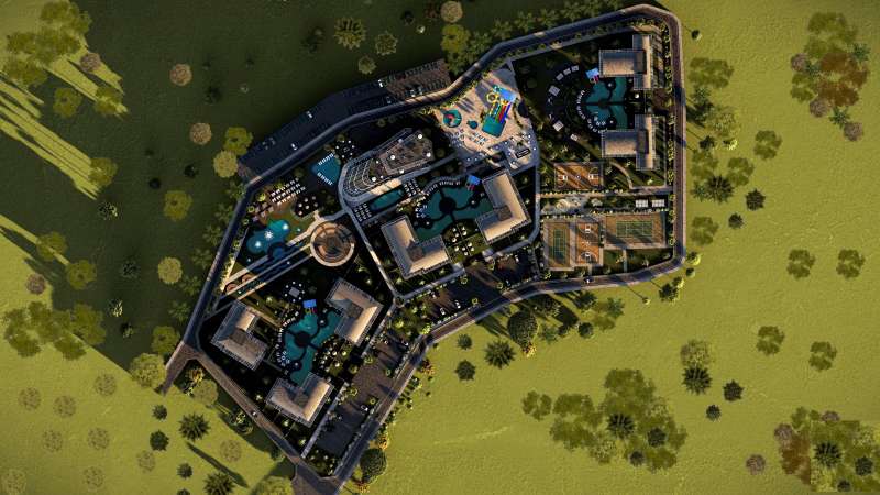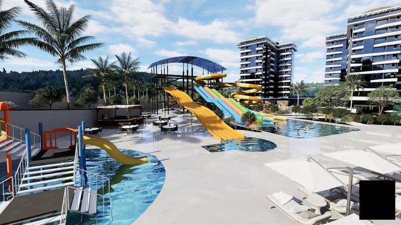 The project includes a beach, indoor and outdoor swimming pools, a heated swimming pool, an aquapark for adults and kids, ornamental pools, a jacuzzi, a professional SPA and massage service, a sauna, a steam room, amphitheater, pool bars, mini club, animation, cafe, restaurant, bar, restaurant with panoramic view, night club, shops, pharmacy, market, barbecue, reception, private shuttle service to the beach and Avsallar, indoor and outdoor kids’ playgrounds, indoor and outdoor car parking areas, volleyball court, basketball field, tennis court, fitness center, and vitamin bar.