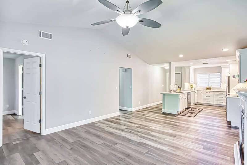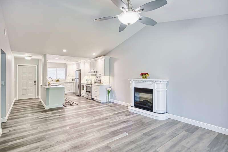 This LUXURIOUS PENTHOUSE condo awaits you! Beautifully UPDATED END-UNIT, flooded with natural light and treetop views, is sure to impress any buyer. NO SPECIAL ASSESSMENTS TO WORRY ABOUT! This stunning condo offers 2 bedrooms and 2 bathrooms on a SPLIT FLOOR PLAN spanning nearly 1,100sqft, laundry in residence with W/D included, and is perfect for those seeking a modern and convenient lifestyle. The SPACIOUS living area features 30' DOUBLE-INSLATED CEILINGS, a cozy FIREPLACE, and neutral LVT & tile flooring throughout--NO CARPET! The EXPANDED & OPENED KITCHEN is a chef's dream with QUARTZITE counters, an island, STAINLESS STEEL appliances, and ample storage in WHITE SHAKER CABINETS. NEW A/C & NEW ELECTRICAL PANEL offer comfort and peace of mind. Enjoy the convenience of an EXTRA STORAGE ROOM and CARPORT, providing plenty of room for all your belongings. Take advantage of this PET-FRIENDLY community's amenities: pool, spa, tennis, pickleball, shuffleboard, and even a vehicle wash station! Newport Glen is ideally located near ample shopping, dining, and entertainment options, making it easy to enjoy all that the area has to offer. Plus, with a short drive to RSW International Airport and SWFL's white-sand BEACHES, you'll have easy access to travel and leisure activities. Don't miss out on this incredible opportunity to own this rated "BEST VALUE BUY" in Newport Glen. Whether you're looking for a permanent residence, vacation getaway, or investment opportunity-- this condo has everything you need for a comfortable and stylish living experience!