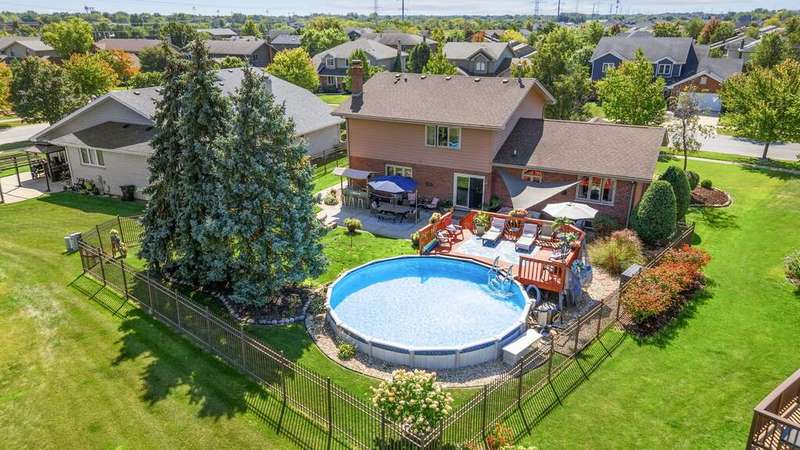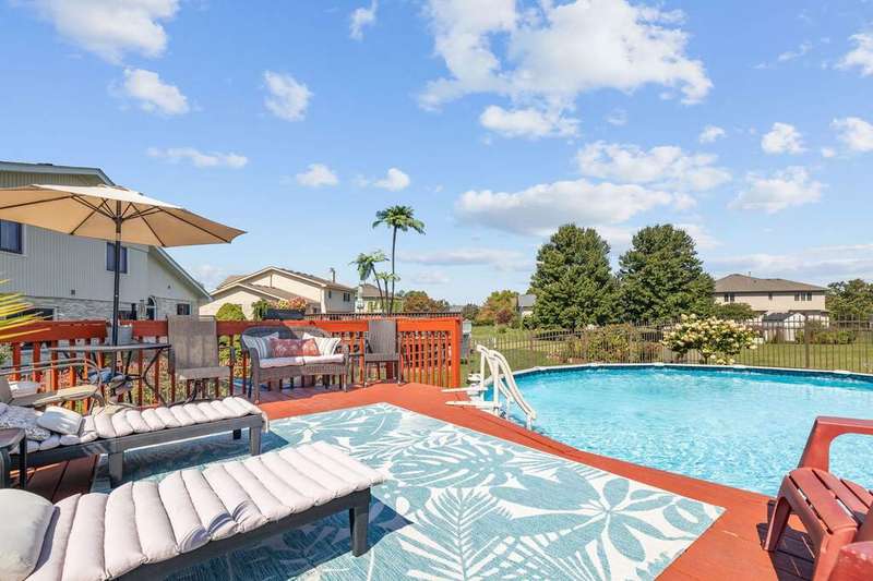 First time ever on the market! Don't miss this stunning, one of a kind home in the highly sought after Brookside Glen of Tinley Park. Impeccably maintained by it's original owner and move-in ready, this home is packed with perks inside and out and is perfect for entertaining all year round. From the moment you pull up, pride of ownership is evident with gorgeous curb appeal and meticulous landscaping. Step inside the spacious foyer and be greeted by soaring cathedral ceilings with exposed beams. The main level offers a ton of living space between the front living room, dining room, kitchen & family room. The eat-in kitchen is a chef's dream with ample cabinet & counter space, a pantry closet, stainless steel appliances (new double oven!), a breakfast bar, plus room for a table. It opens seamlessly into the cozy family room with a brick, wood-burning fireplace. Perfectly tucked away off the family room is the 4th bedroom-ideal for guests, an office, or a playroom. The laundry/mud room is conveniently located on the main level as well. Upstairs offers 3 generously sized bedrooms + a full hallway bathroom. The primary suite boasts cathedral ceilings, a walk-in closet, and a full, attached bathroom with a separate tub and shower along with a double vanity sink. The custom & cozy, Northwoods-inspired basement is a true showstopper, perfect for hosting winter parties or simply relaxing at home. With 10-ft ceilings, a stone fireplace, bar with seating, reading nook, and half bath, no detail was overlooked! Plenty of storage options as this home is partial basement/partial crawl. Step outside to your backyard oasis-an entertainer's dream! Enjoy the oversized concrete patio, brick paver patio, and custom stone bar with gas grill and added storage. The 24-ft round, heated pool (only 8 years young) and connecting deck are ready for summer fun. Fully fenced yard for privacy and peace of mind. The 3-car attached garage is insulated and drywalled. Close to I-80, Metra, parks, trails, shopping, and dining. Located in Frankfort's 161 School District and award-winning Lincoln Way East High School. Between the home itself and the incredible location, this home truly has it all!