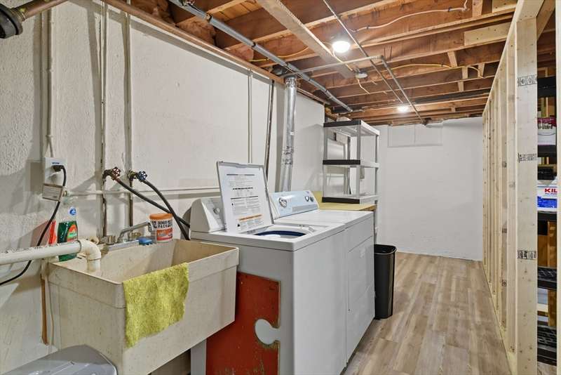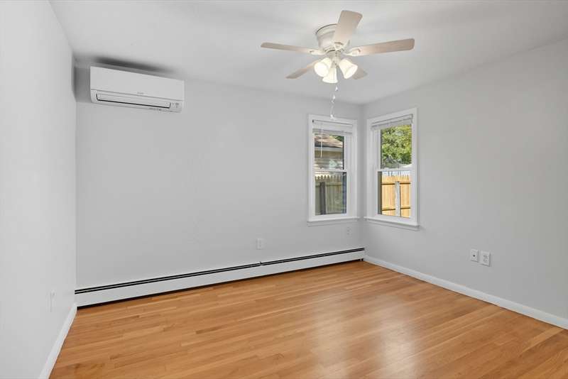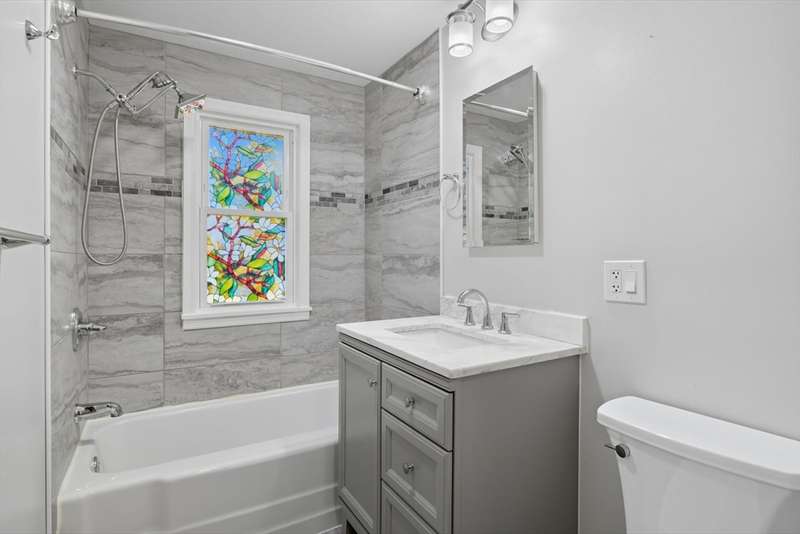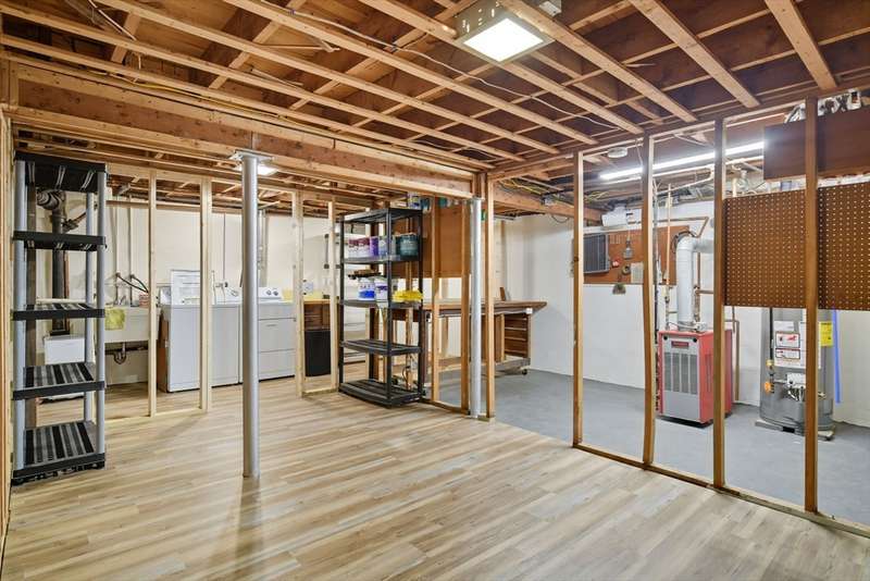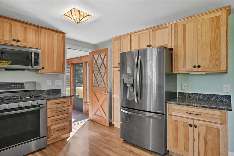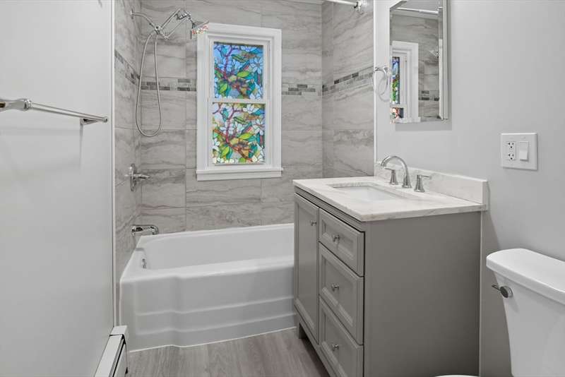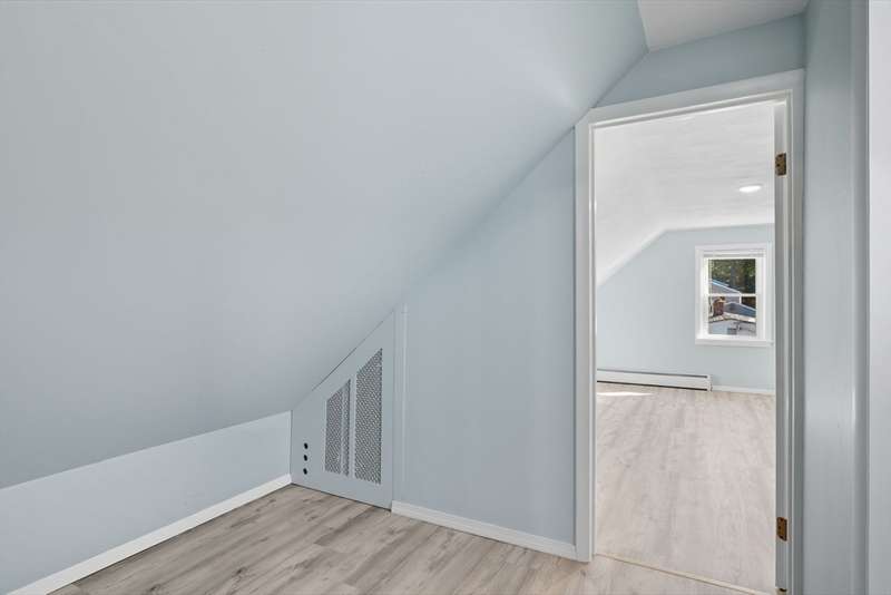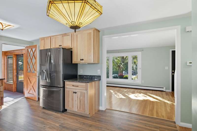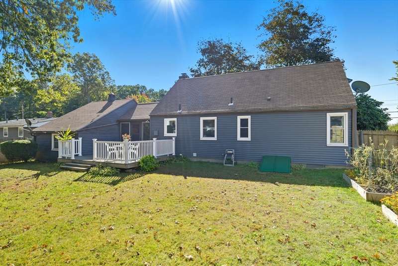 CHARMING CAPE! Located on quiet street convenient to shopping this home has many recent updates! Living room with refinished hw floors, fireplace and the TV is included. Renovated kitchen with Kraft Maid hickory cabinets, stainless steel appliances and new LPV flooring. Dining area is open to the beautiful new kitchen. Full bath was gutted with new tub/shower, vanity, toilet, LPV flooring and a space saving pocket door. Two bedrooms on the main level with hw floors and both have newer mini-split air-conditioning. The second floor includes a bedroom with new LPV flooring and an unfinished area of that could be developed into additional living space. The basement has new LPV flooring and is studded should you want to finish it. Welcoming enclosed breezeway with access to the garage and back vinyl deck. Lovely back yard with terraced stone wall area, raised gardens & shed. replacement windows, hot water tank (2025), new circuit breaker box. OFFER DEALINE TUE 10/7 @ 4:00 PM.